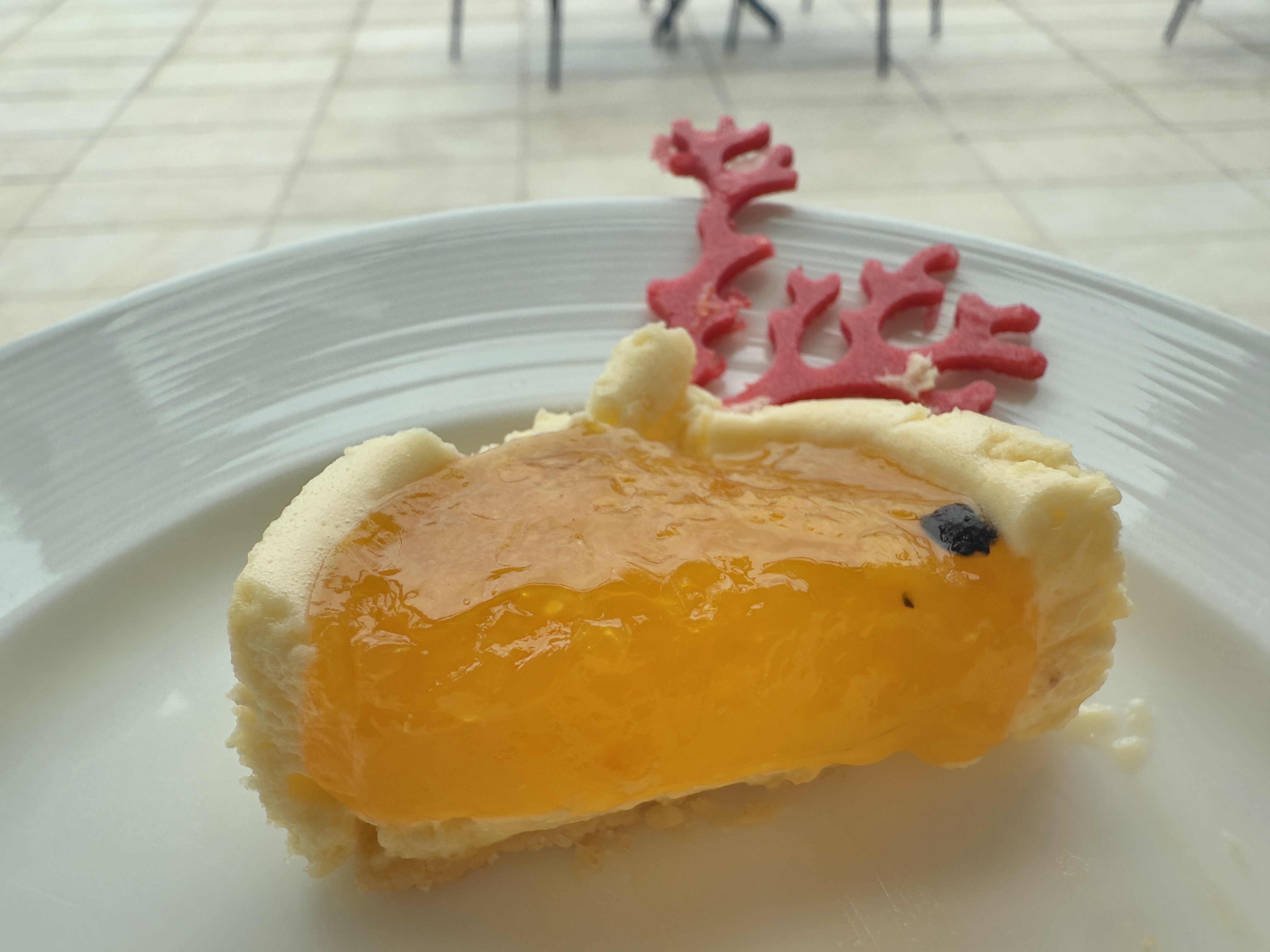 赤色の珊瑚礁のアクセントもかわいく、サクサクとした食感で甘味がありました。