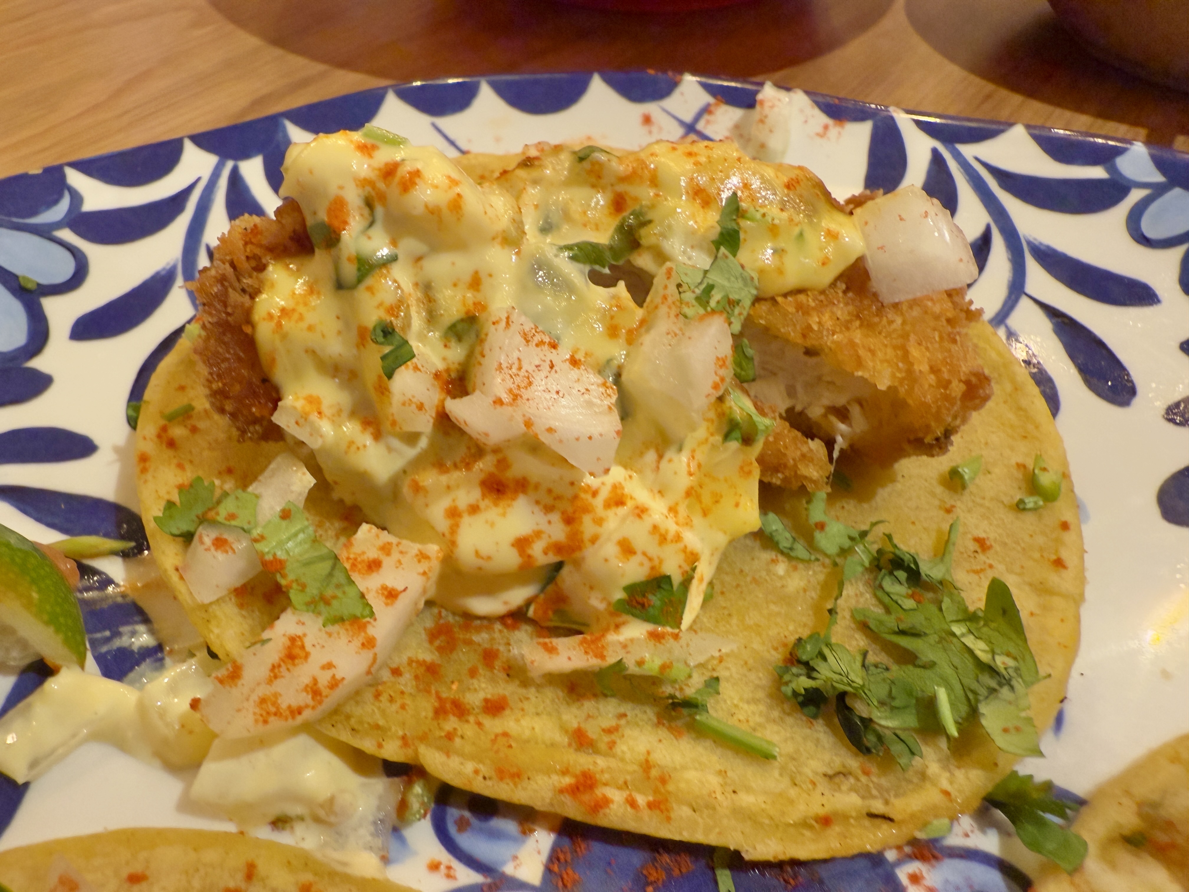白身魚のフライはサクサクながらもふっくらと柔らかく、海外では主流ながらも沖縄ではまだまだ珍しいお魚のタコスを味わえました。