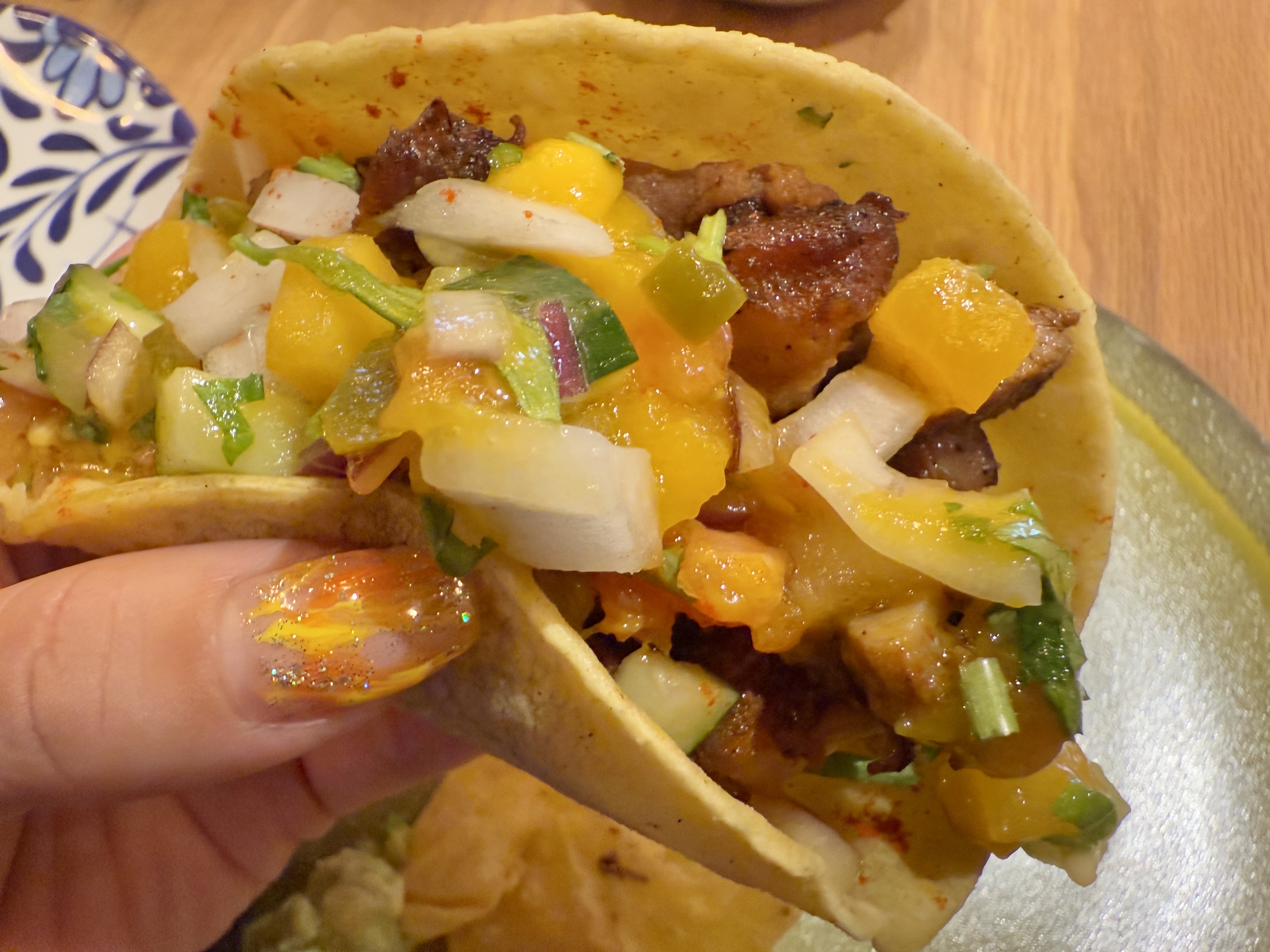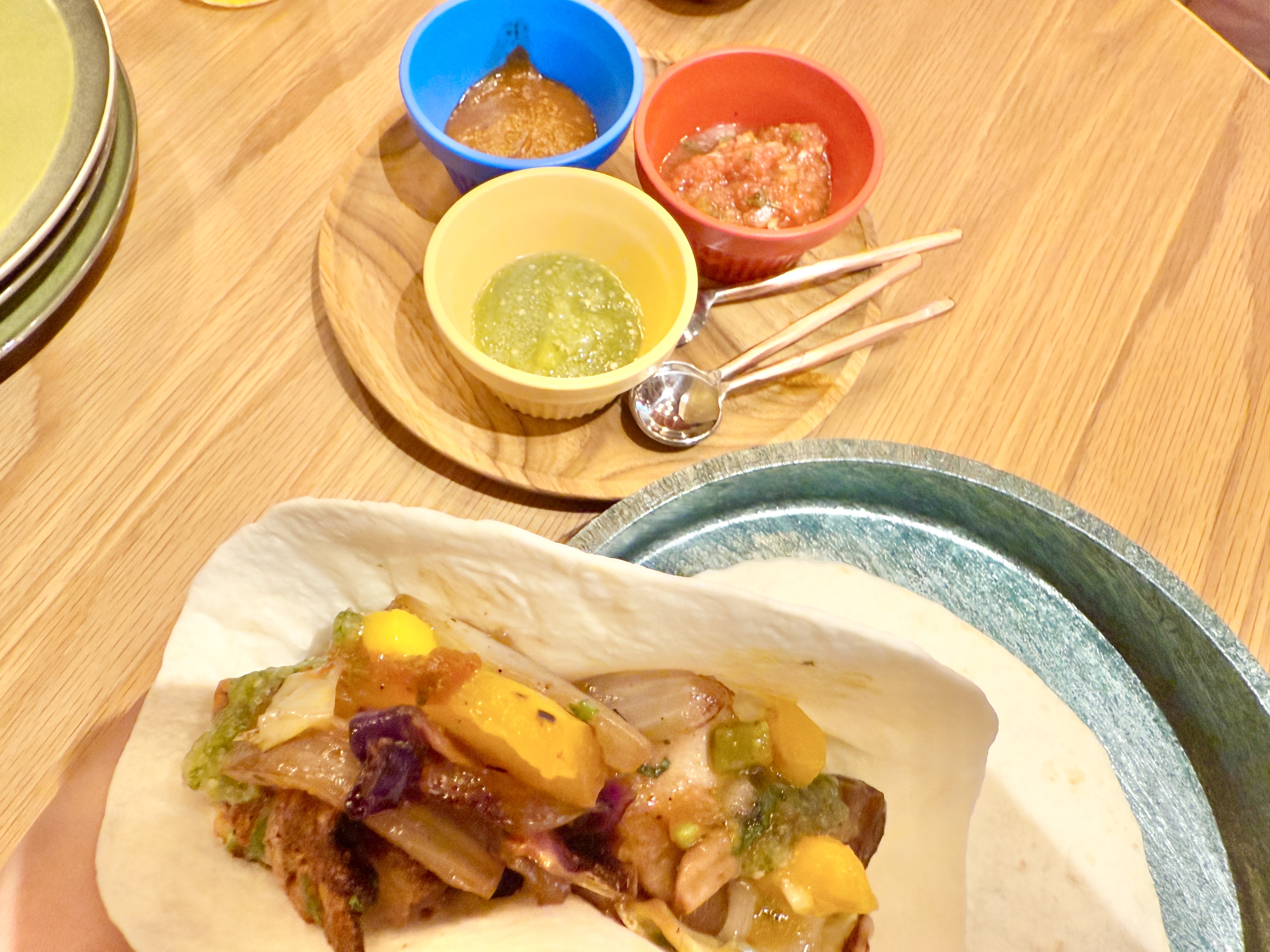 ちなみに、トルティーヤを巻いてお口に運ぶのですが、皮からはみでそうなほどボリューム満点です。