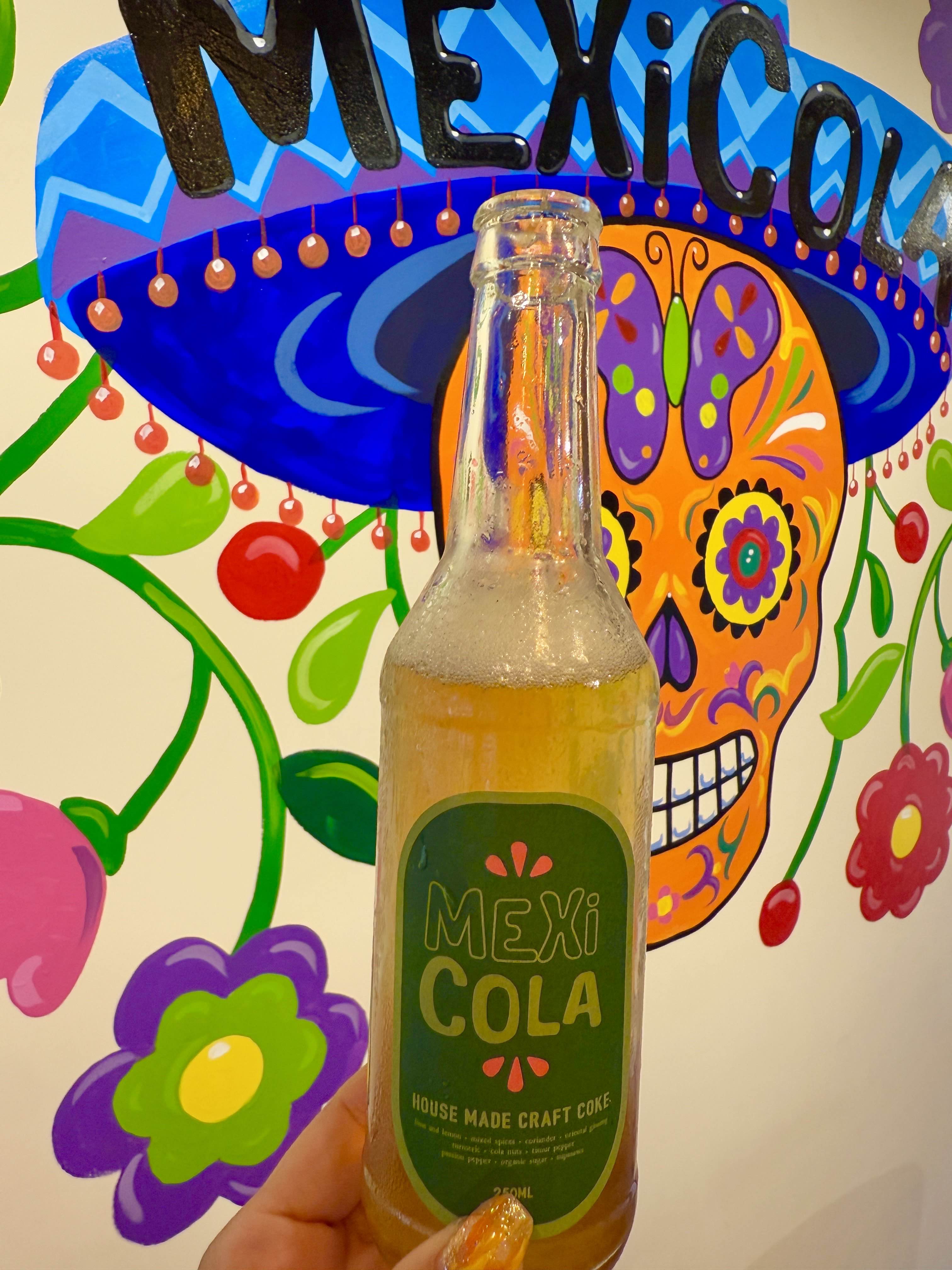 瓶に入ったコーラは、なんと「メヒコーラ」オリジナルのクラフトコーラ!