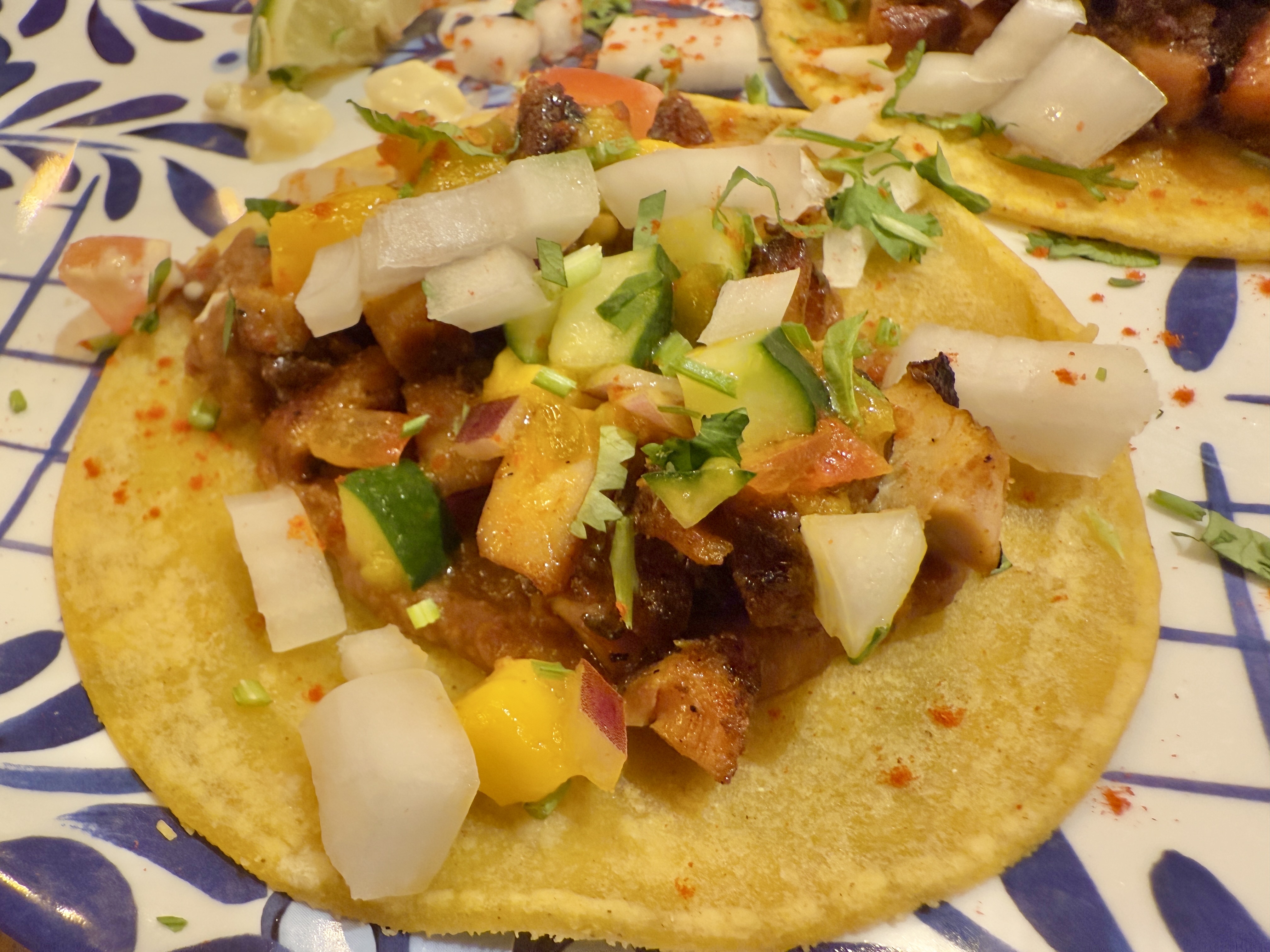 フィッシュとチキンの2種類のタコスです。