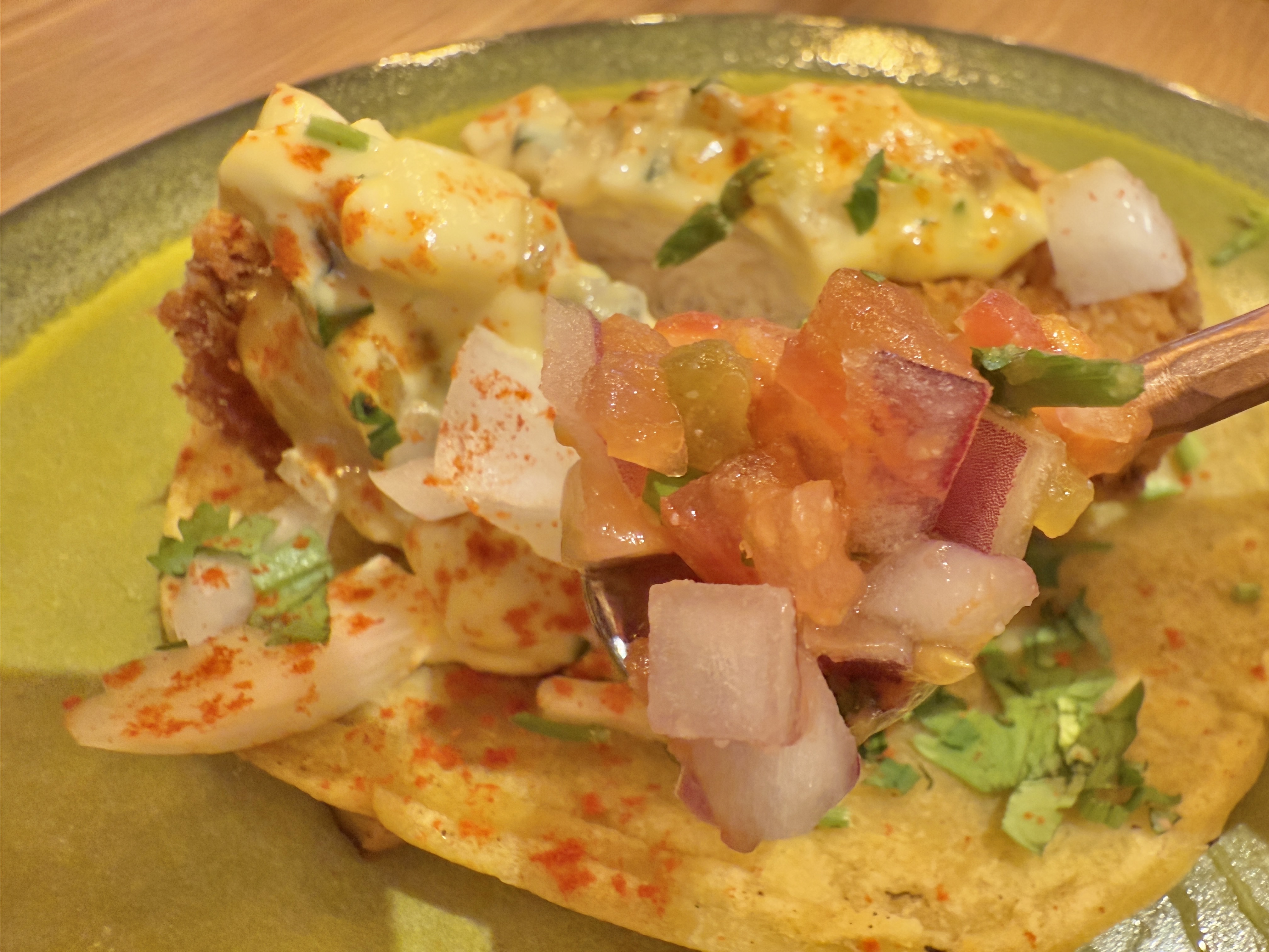 そのままでも美味しいですが、サルサの「サルサ・メヒカーナ」をのせて味変も楽しみました。