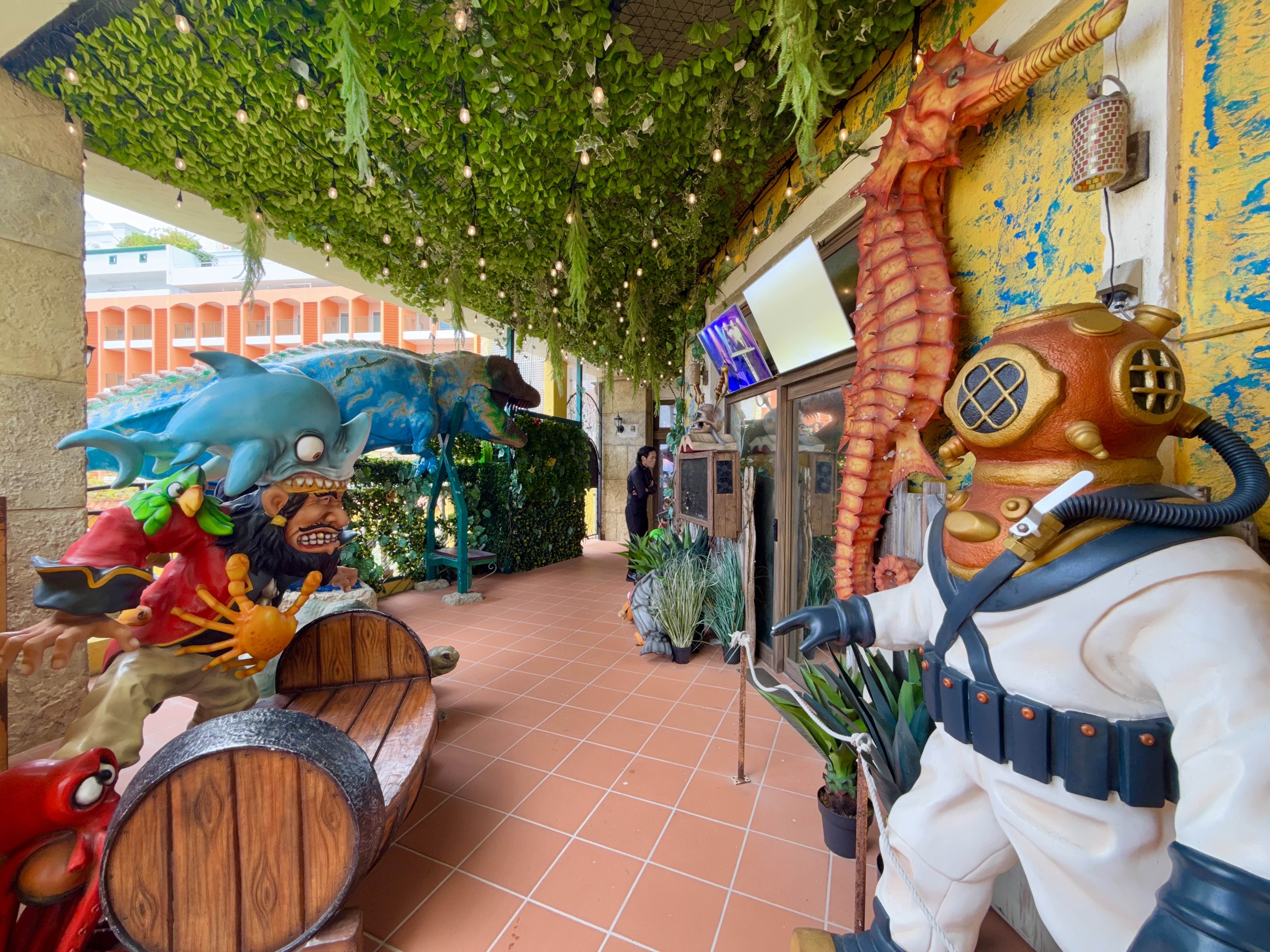 エントランス前では、お子さんが喜びそうな大きな恐竜のオブジェなどがあり、様々な仲間たちがお出迎えしてくれ賑やかな雰囲気が漂っています♪