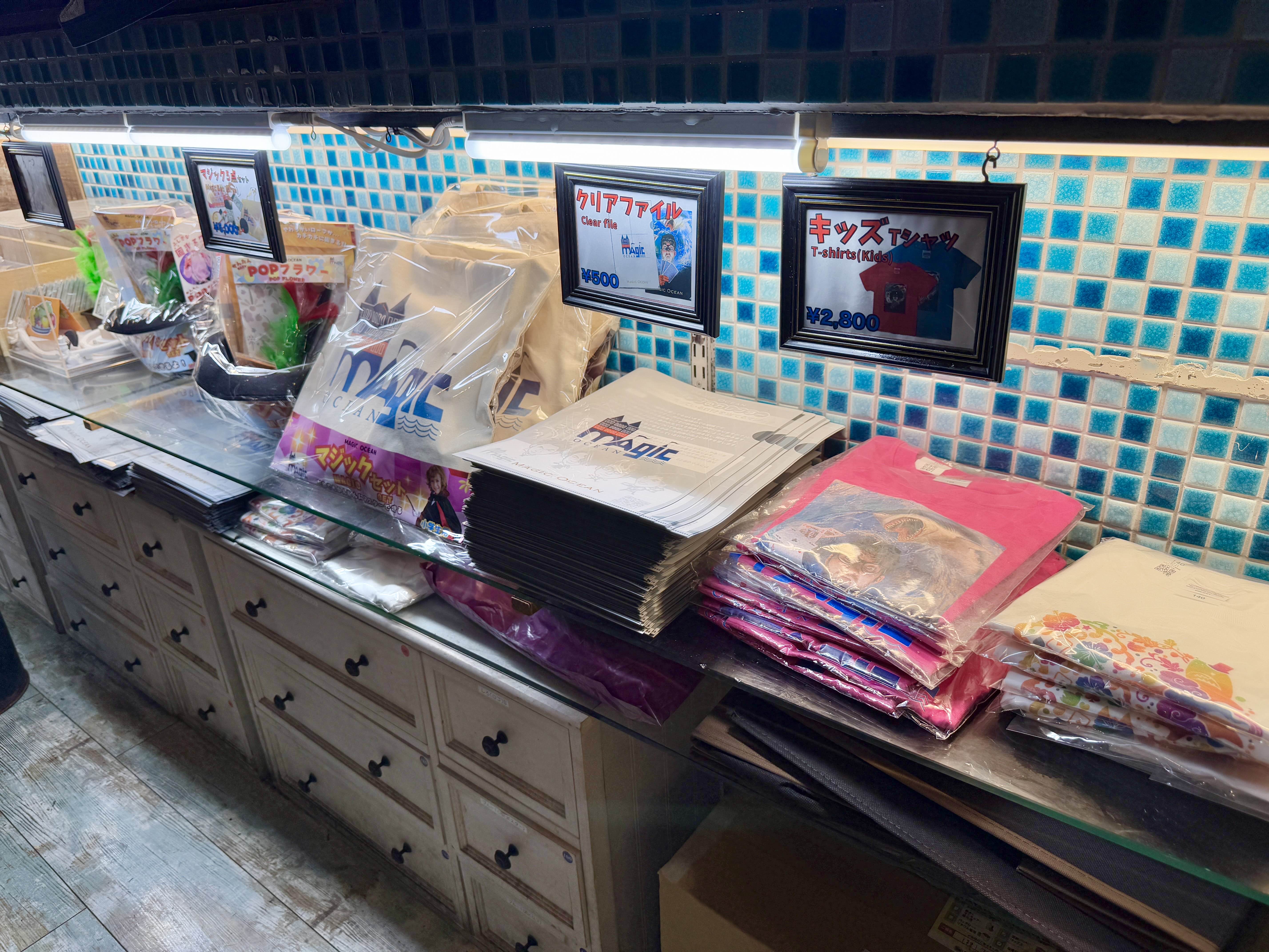 「マジックオーシャン」のロゴ入りオリジナルグッズの販売コーナーです。