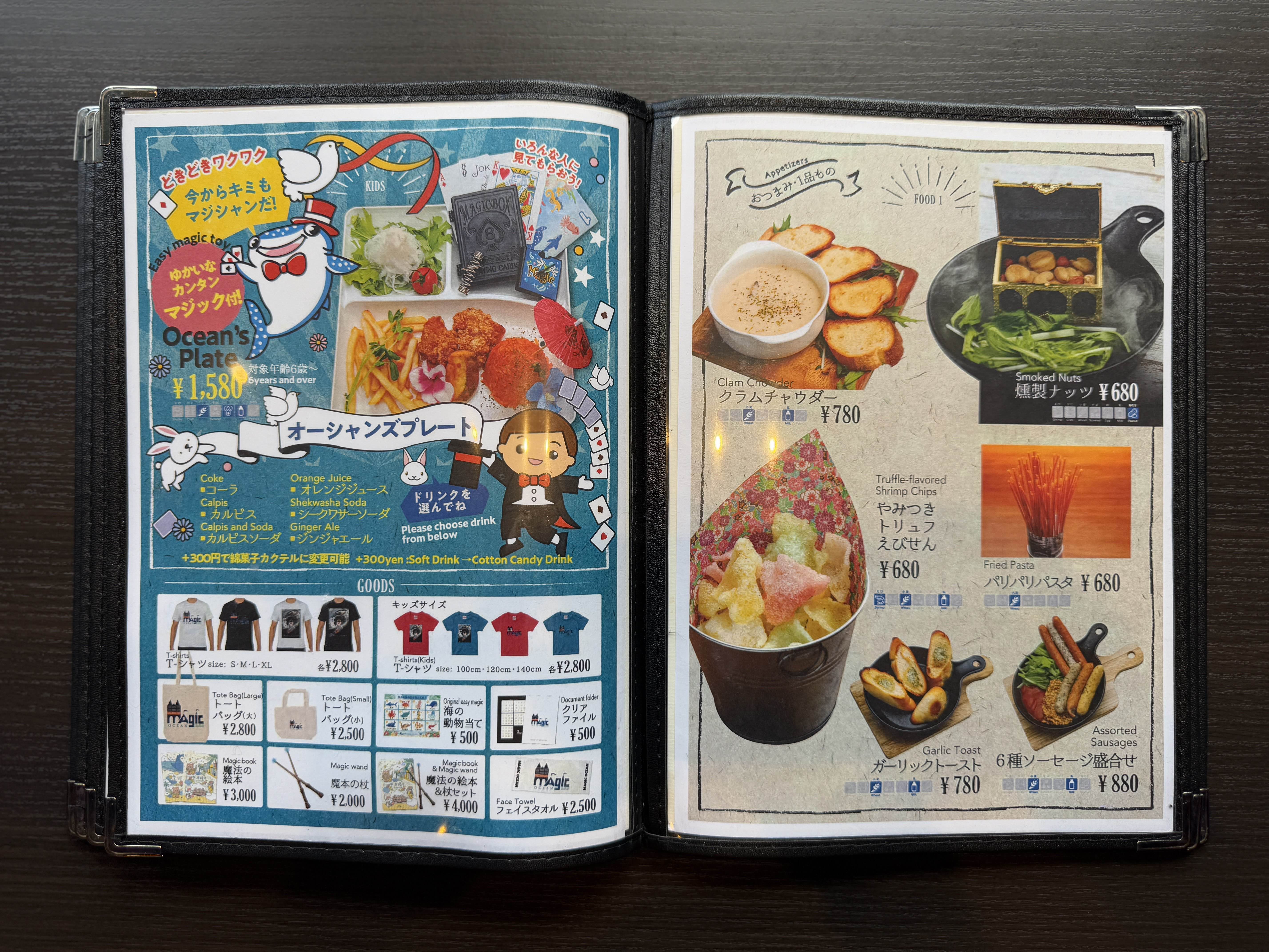 「マジックオーシャン」は、お子さんも歓迎していて、対象年齢6歳からのキッズメニューもありますよー!