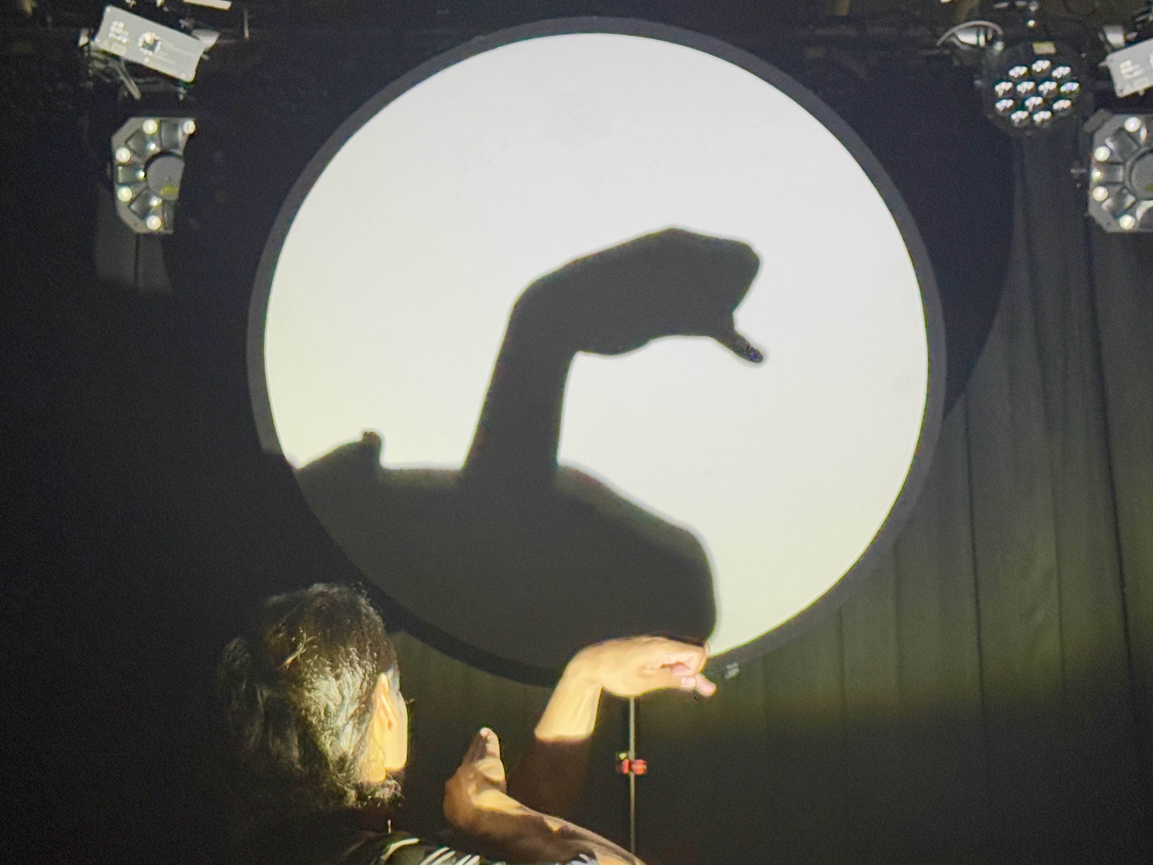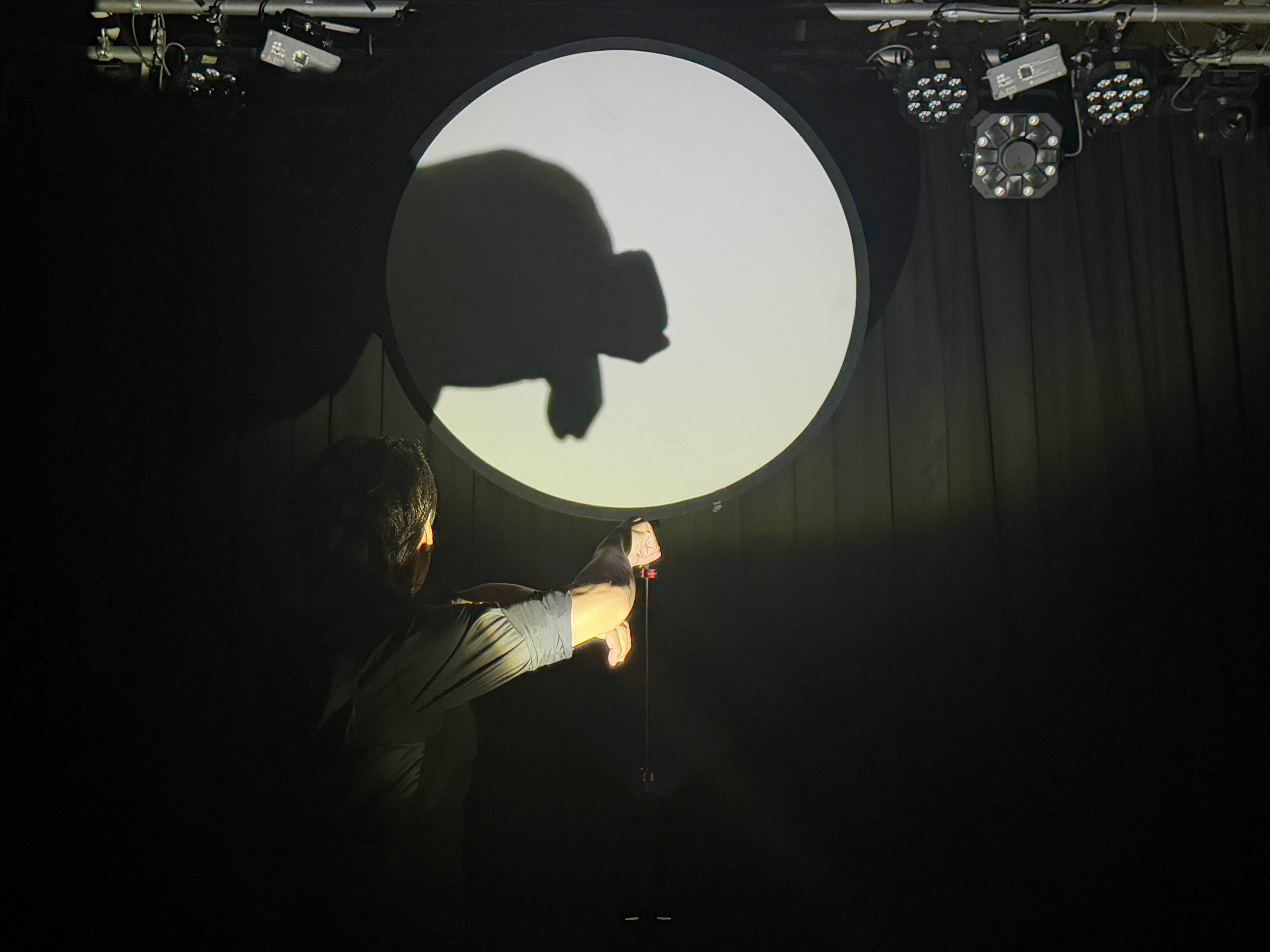 公演後にショーンさんに伺ったところ、カメの影絵は、実際に水族館でカメが泳ぐ姿を真似したりとその動きを観察し、できあがった影絵だそうです。