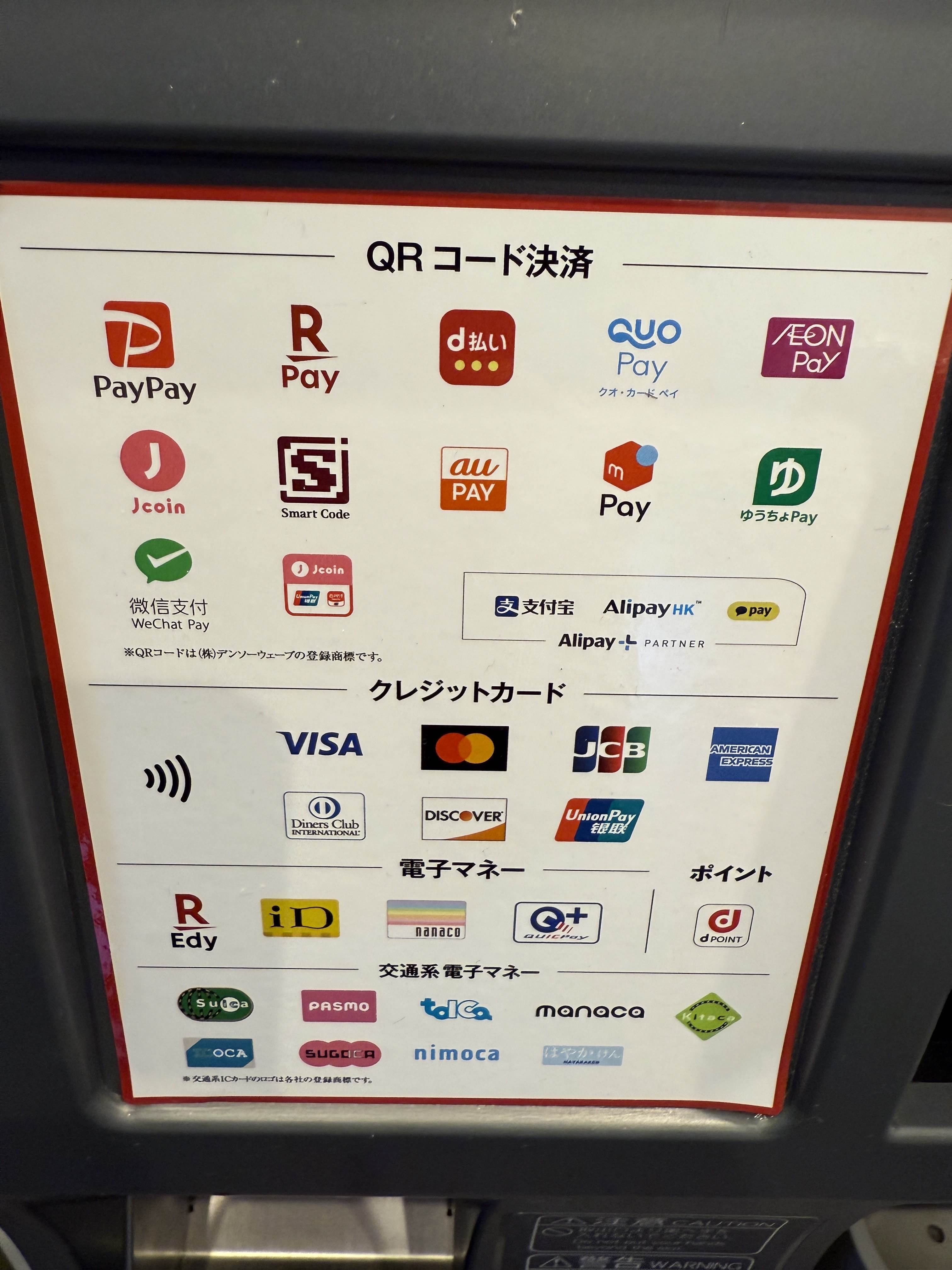 電子マネー:可能(利用可能な種類は記事内画像を確認してください)