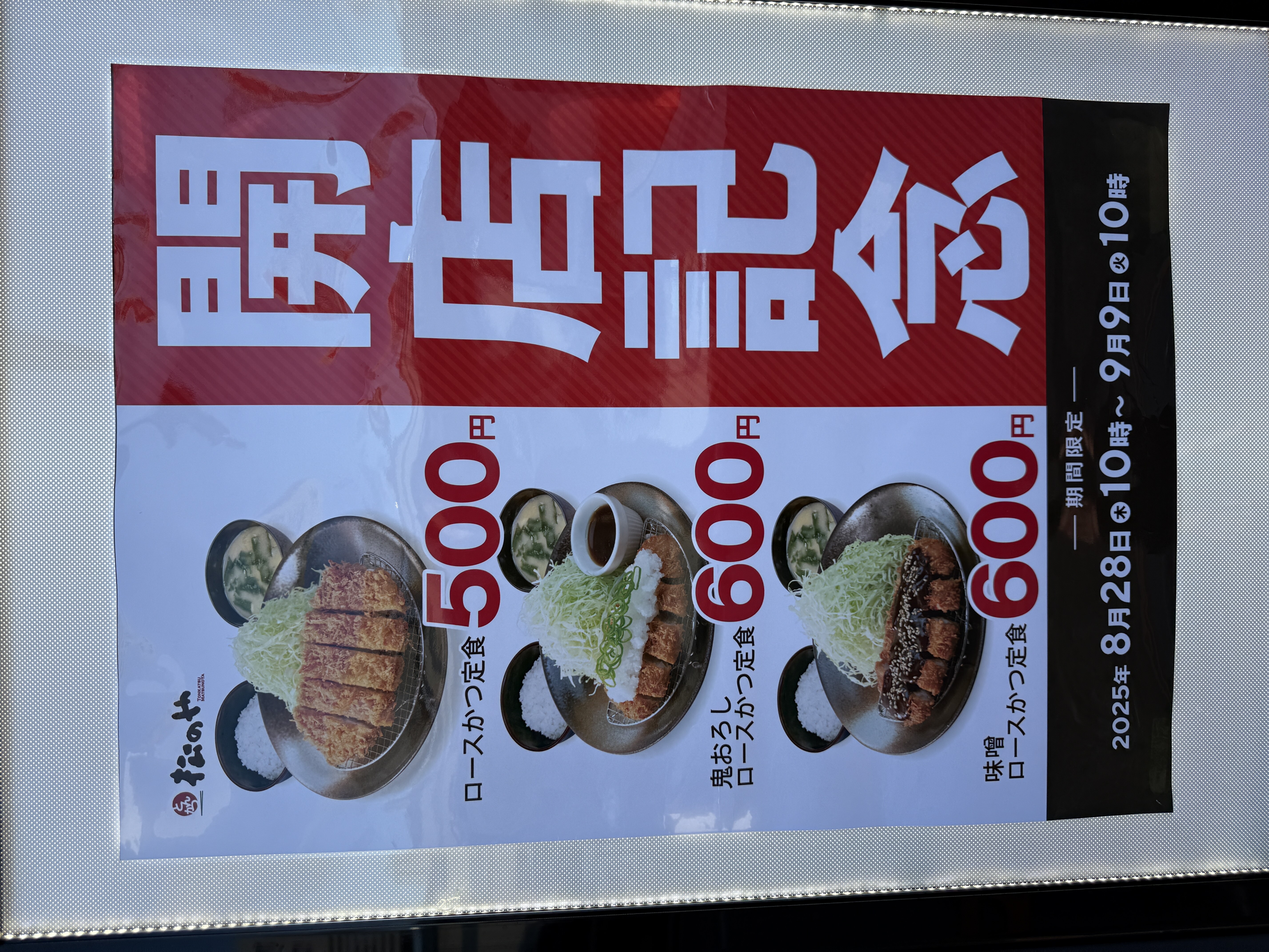 現在、オープンセールで「ロースかつ定食」が、なんとワンコイン500円となっています!