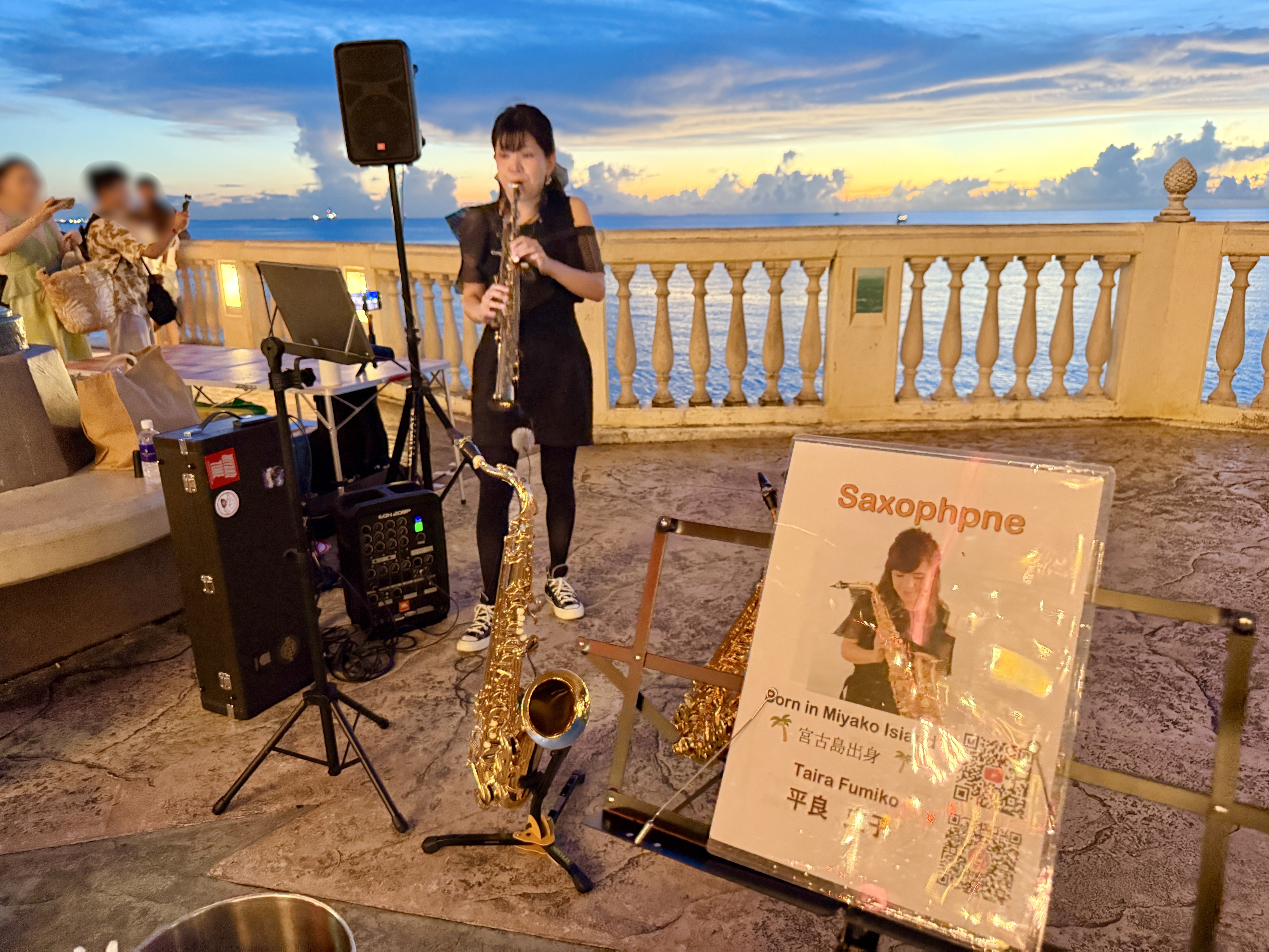 サンセットを眺めながらサックスや三線の音色が聴けちゃいます♪