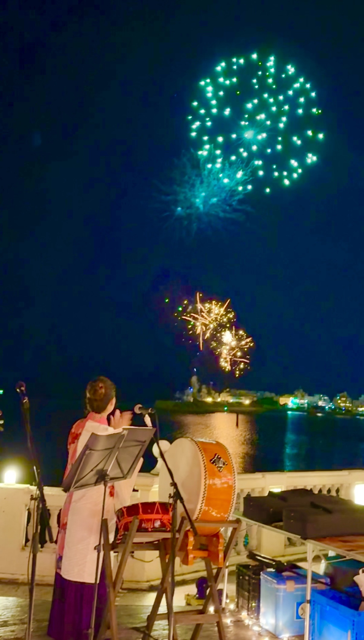 カチャーシーの曲が終わり、それと同時に20時の花火が打ち上がりました!