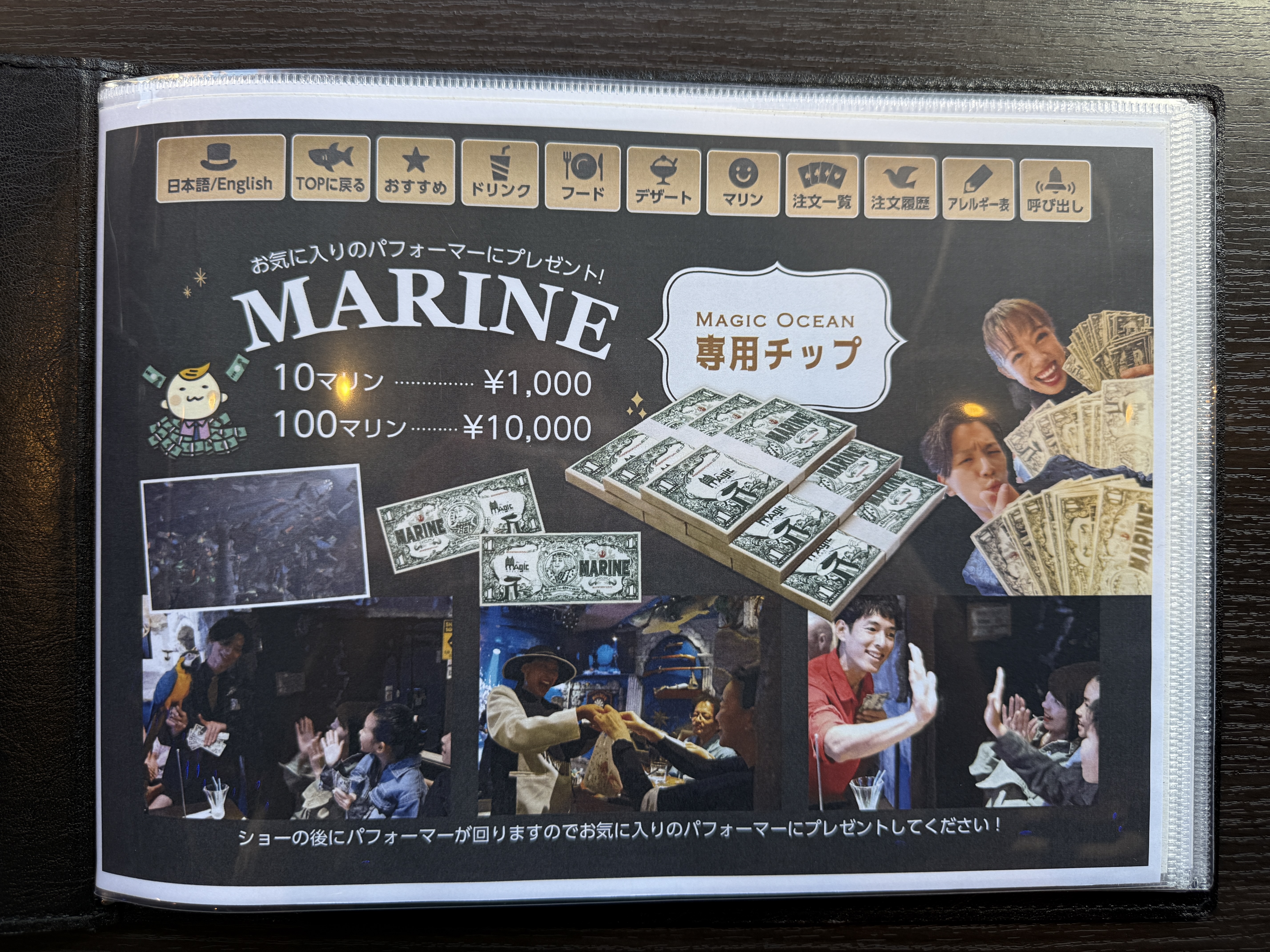 海の魔法レストラン「マジックオーシャン」では、公演中に飲食も楽しめます。