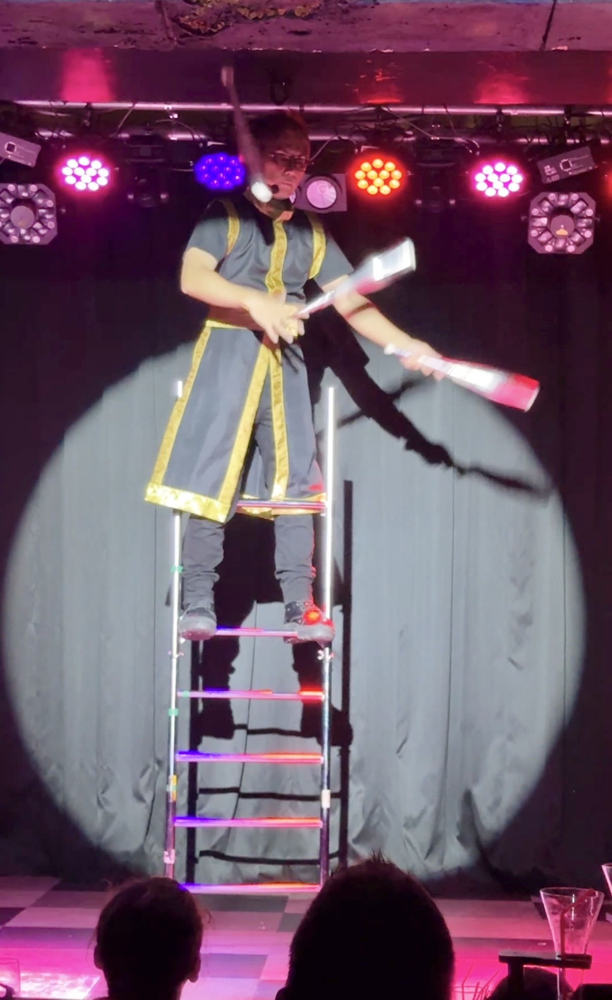 ハシゴに登りバランスを取りながらジャグリングするという高度な技を繰り広げました。