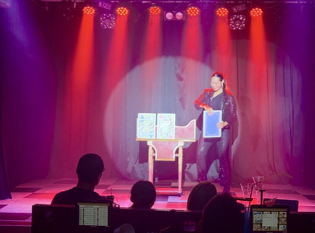 ノリノリなテンポのある音楽に合わせて披露するマジックに見惚れました。
