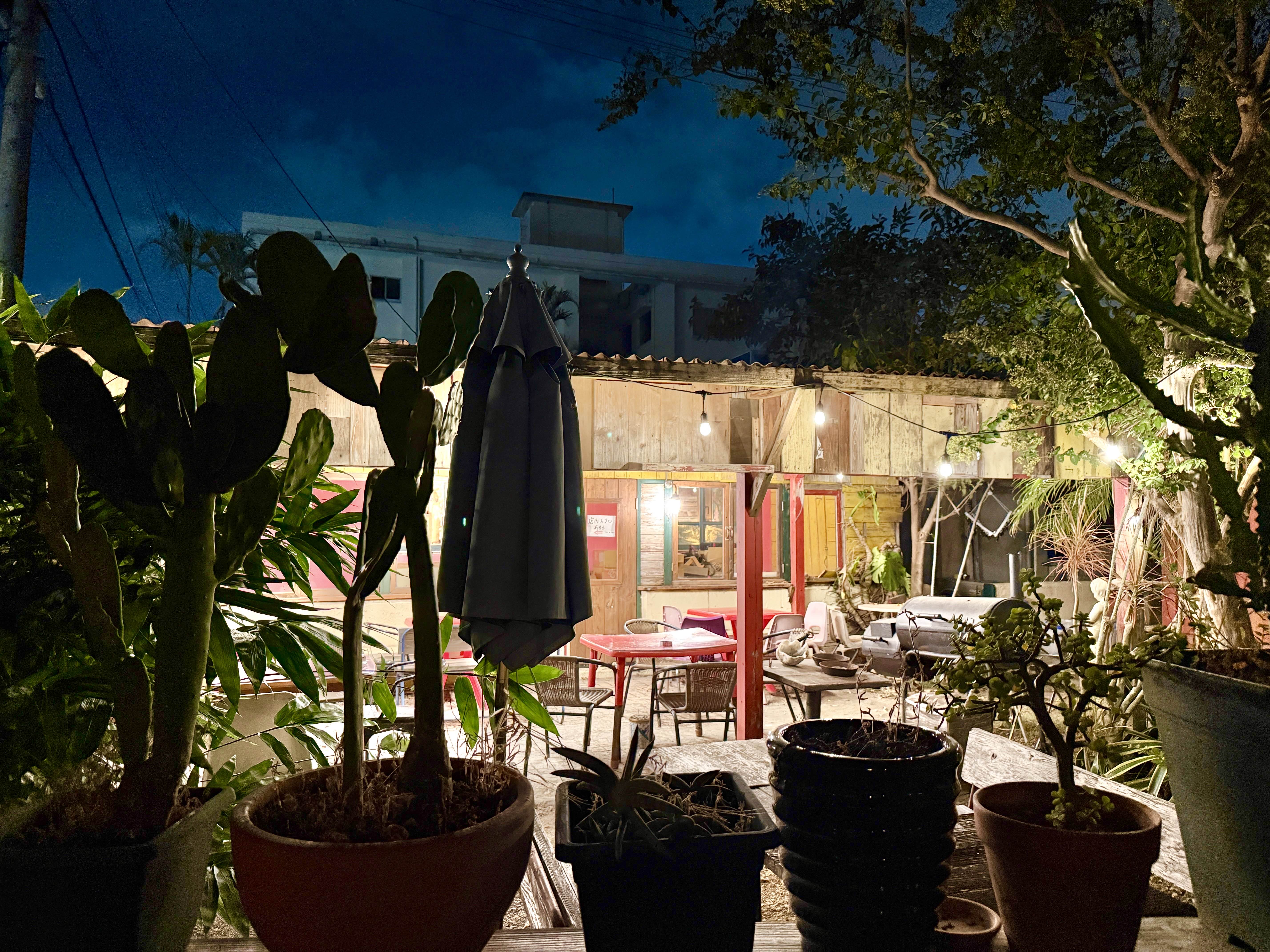 お食事後に外へ出ると、テラス席の方は明かりが目立ち、良い雰囲気をだしてました。
