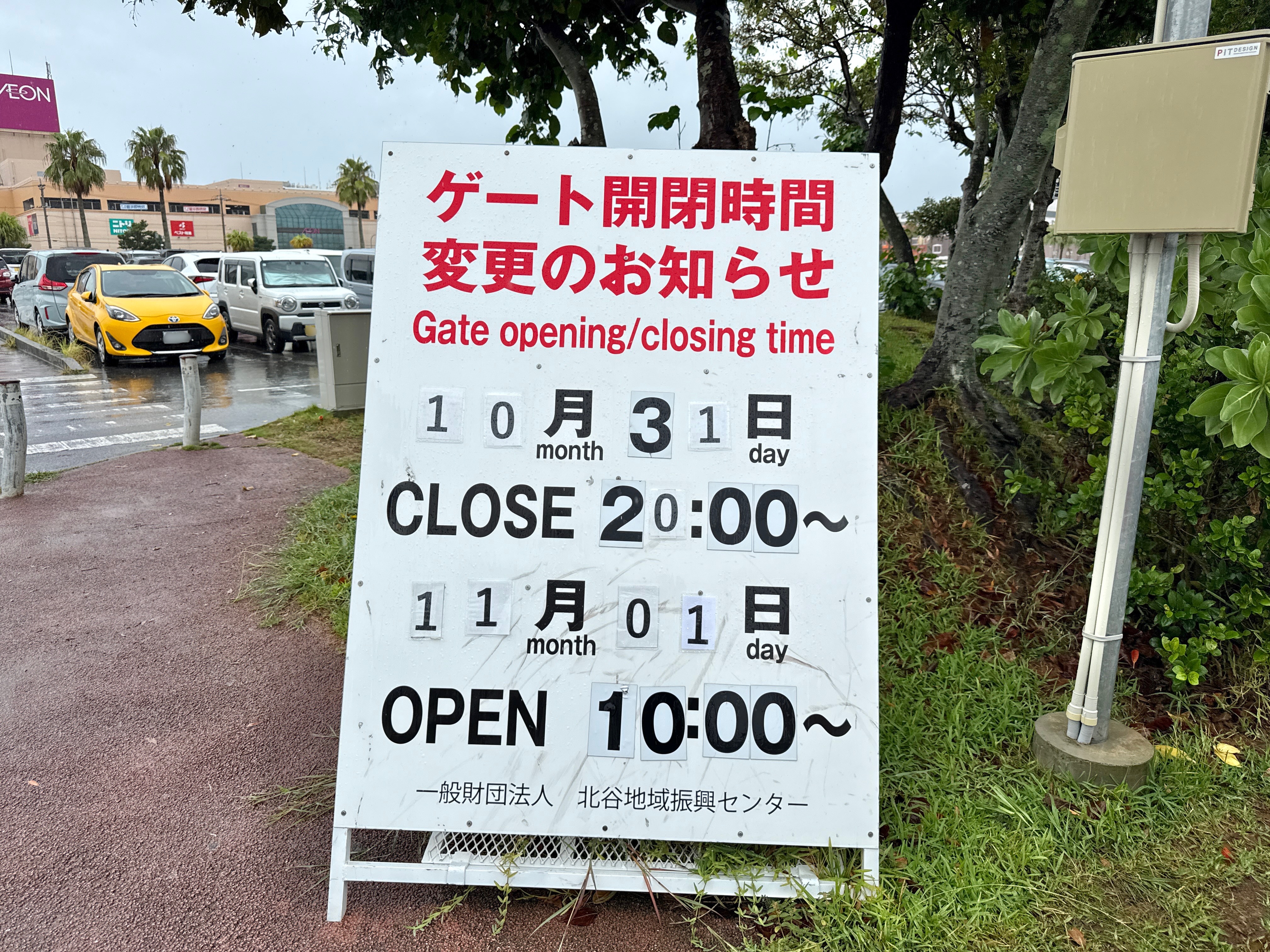 北谷町美浜にある北谷町営「美浜駐車場」の入口の閉門時間が、2025年10月31日(金)、ハロウィンの日は変更になりますよー!