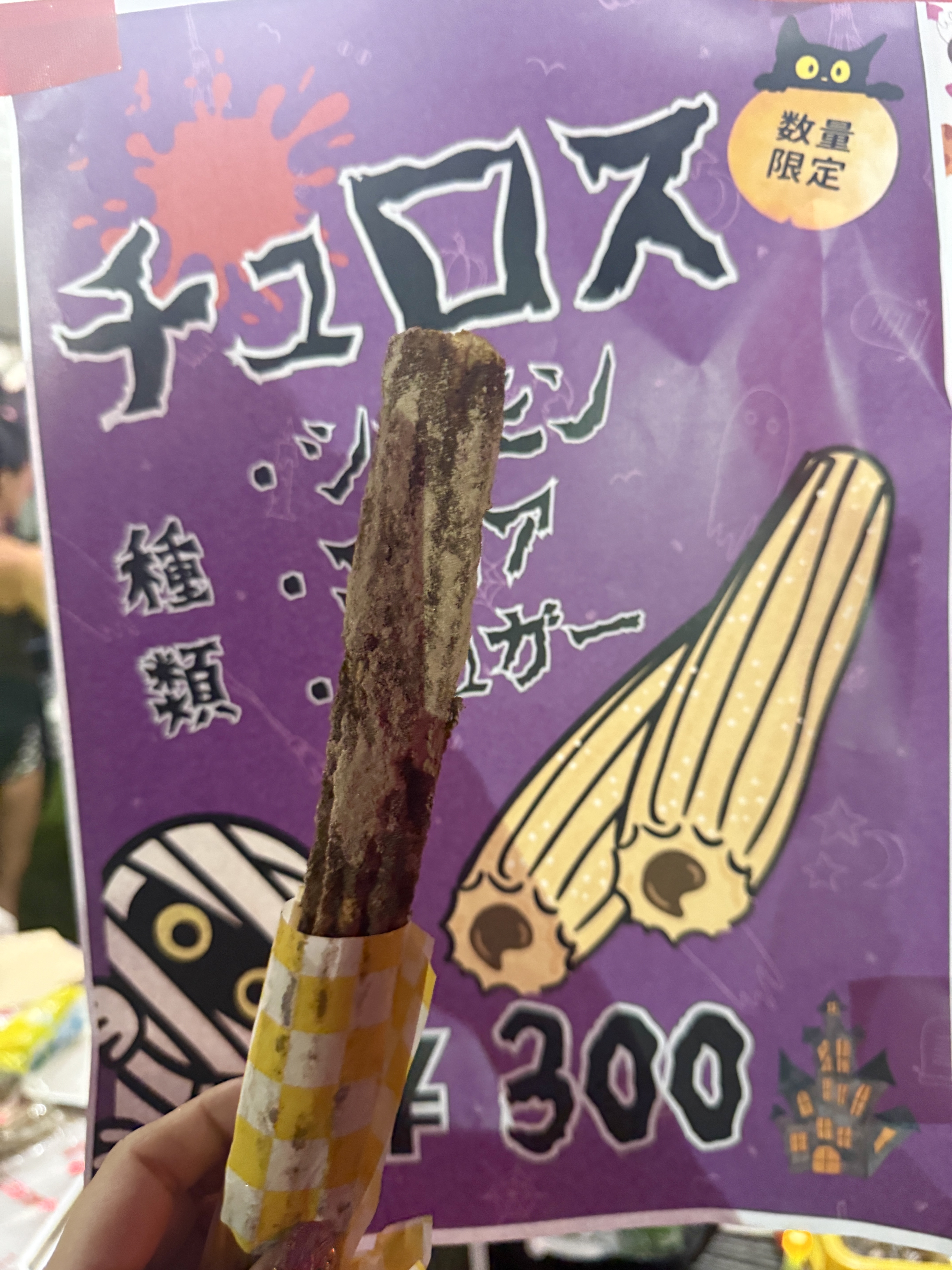 チュロスは、シナモン、ココア、シュガーから味を選べました。