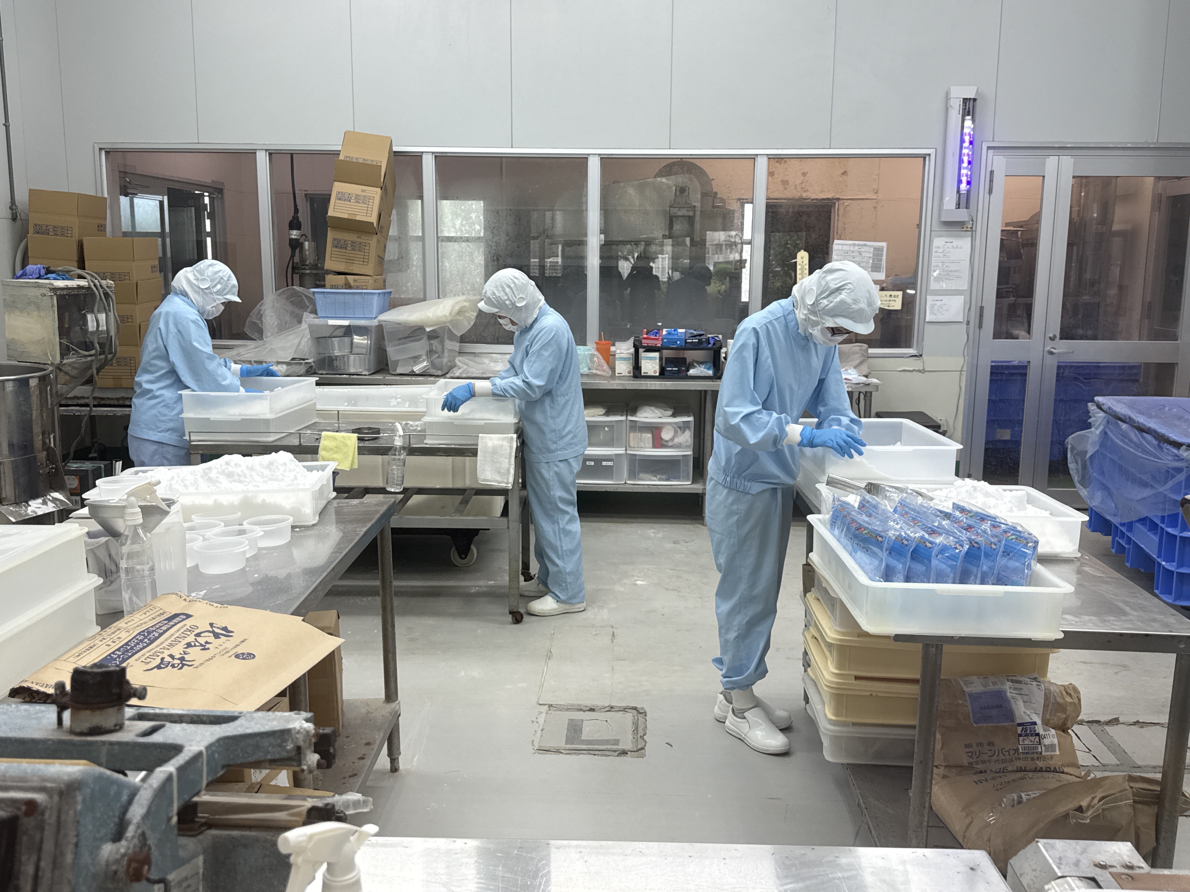 施設内では、ガラス越しに製造中の様子をみることができます。