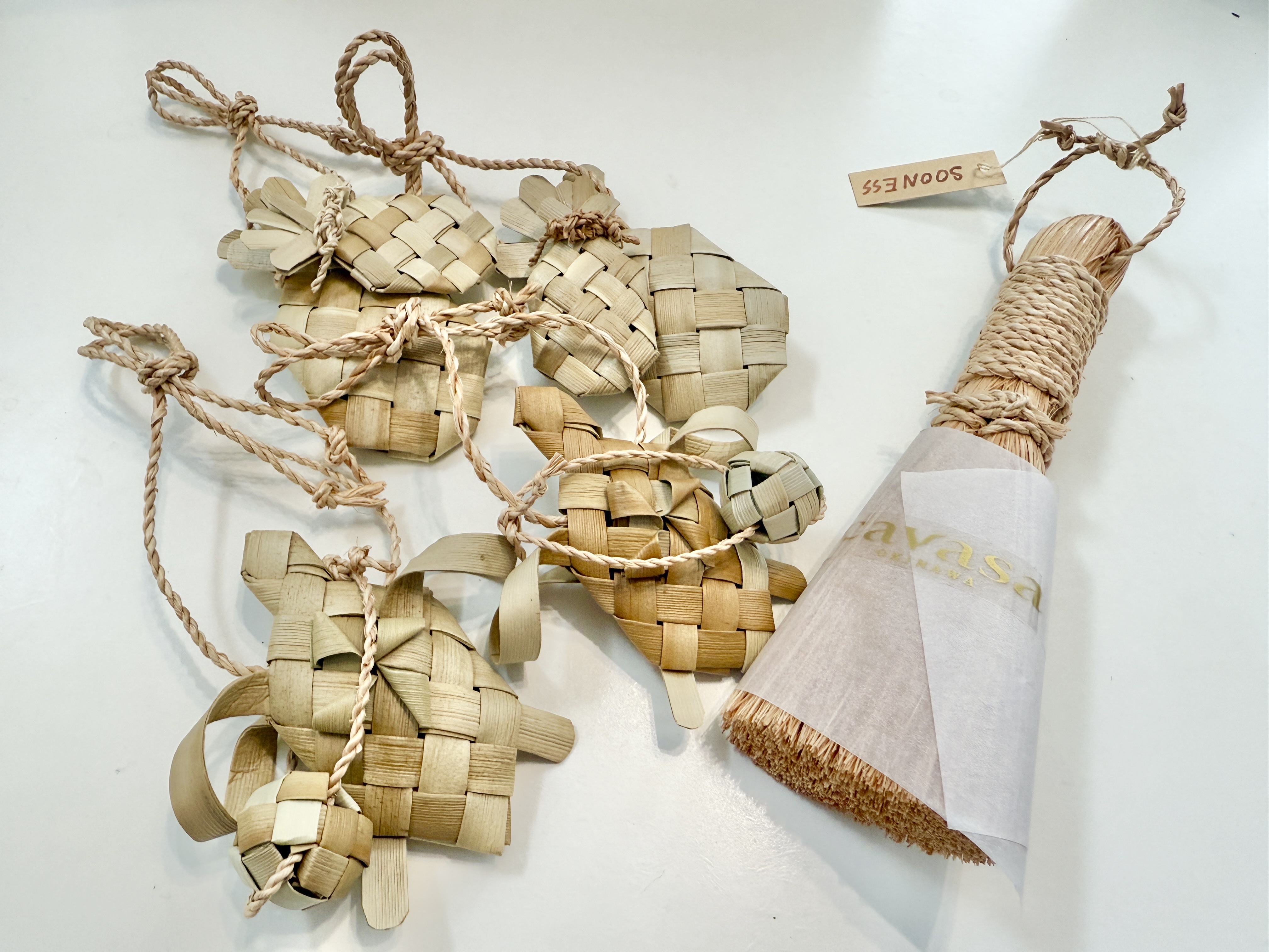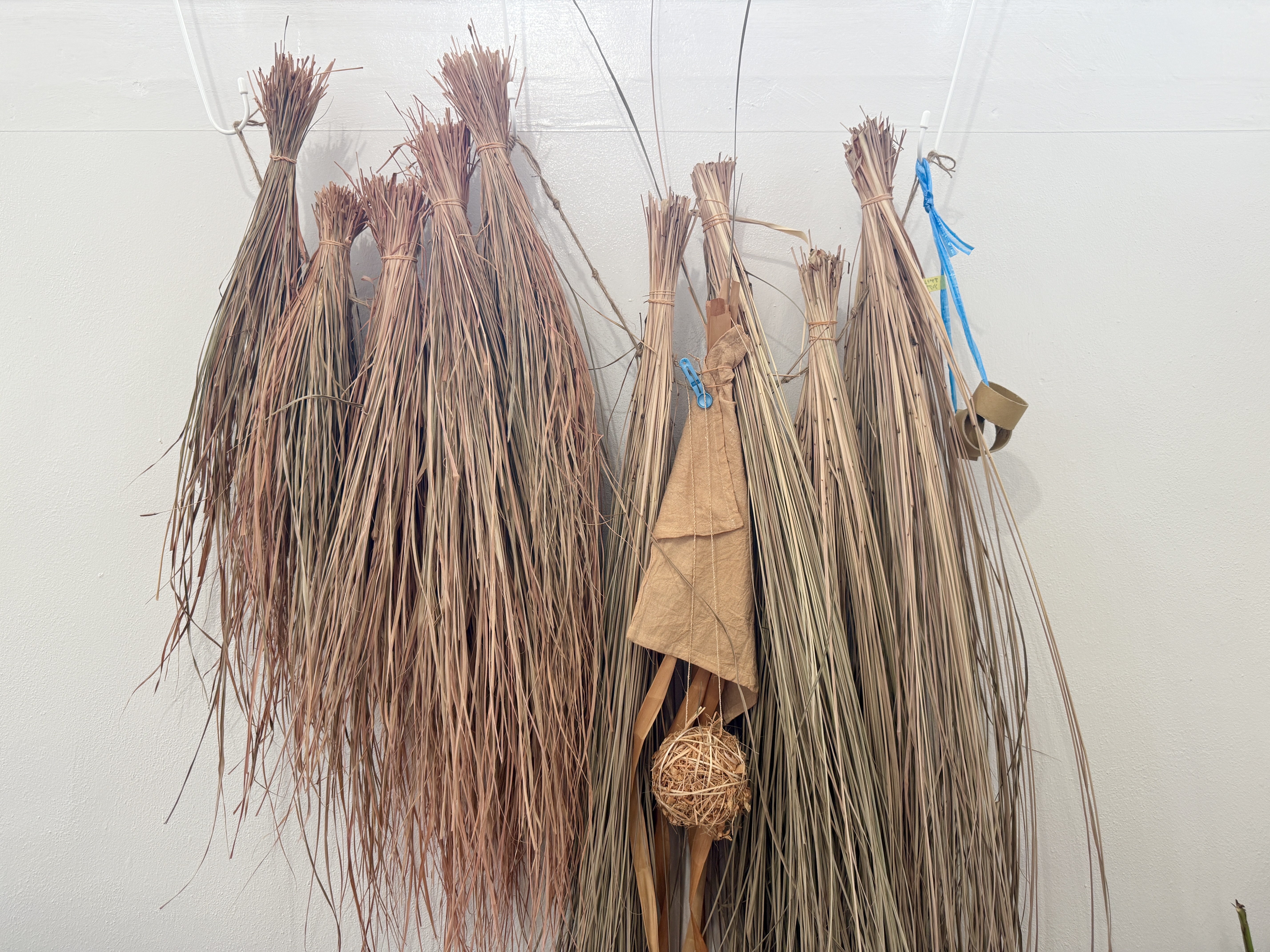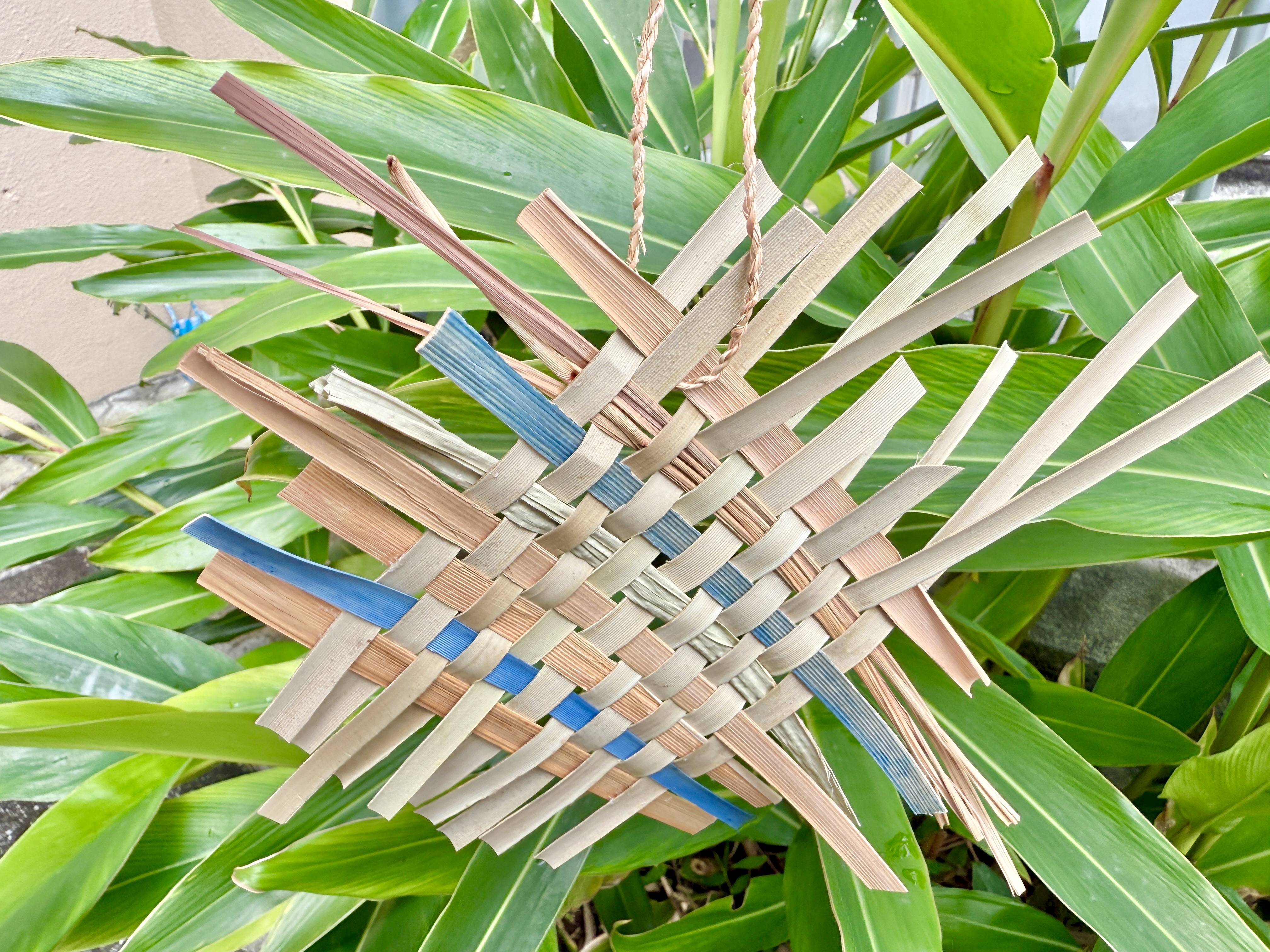 月桃、クバ、アダンなど沖縄に自生する植物をつかい、コースターやミニほうきなどを製作しています。