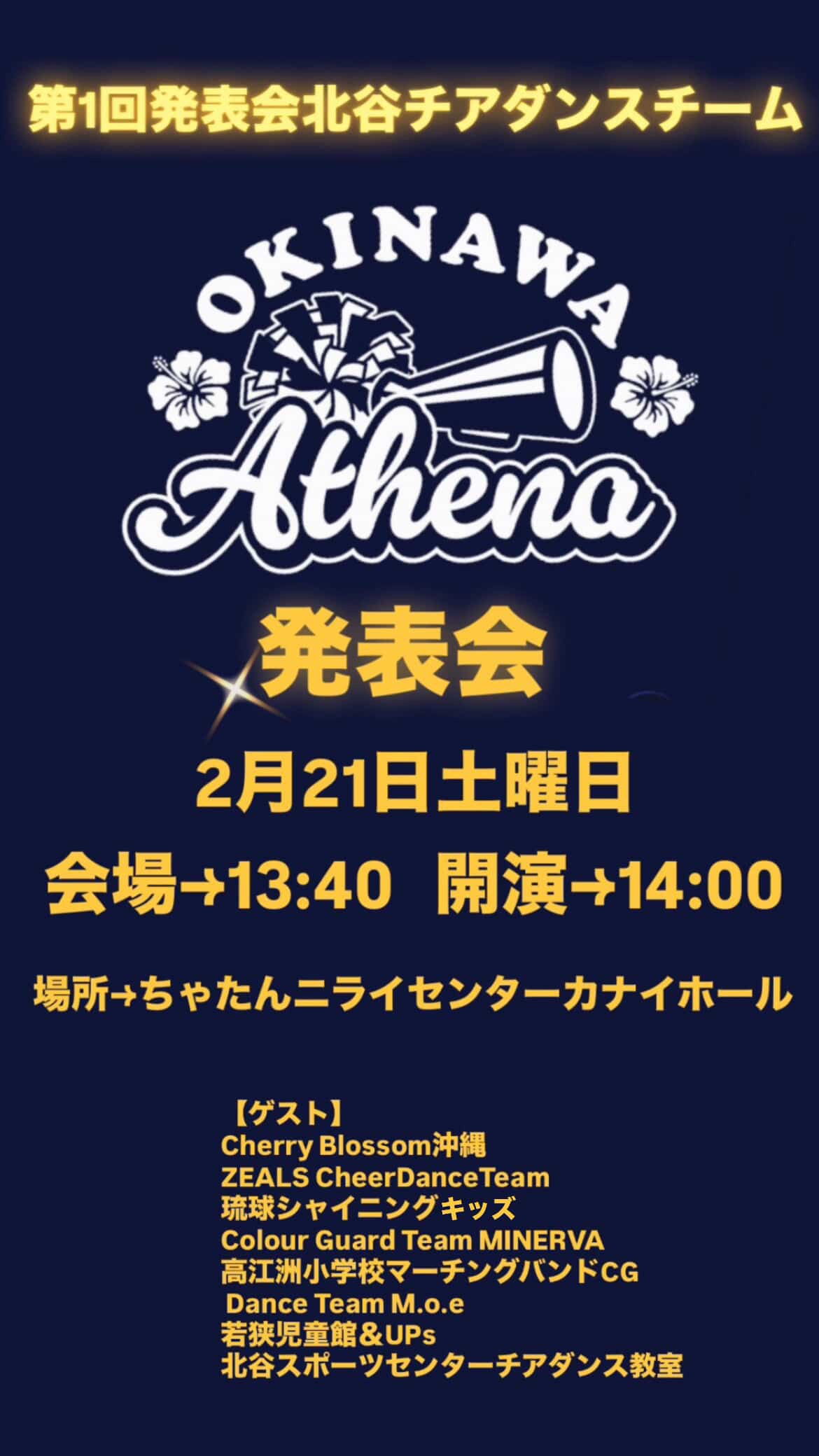 本日は、北谷チアダンスチーム『Athena』の発表会が開催されるのでお知らせです♪