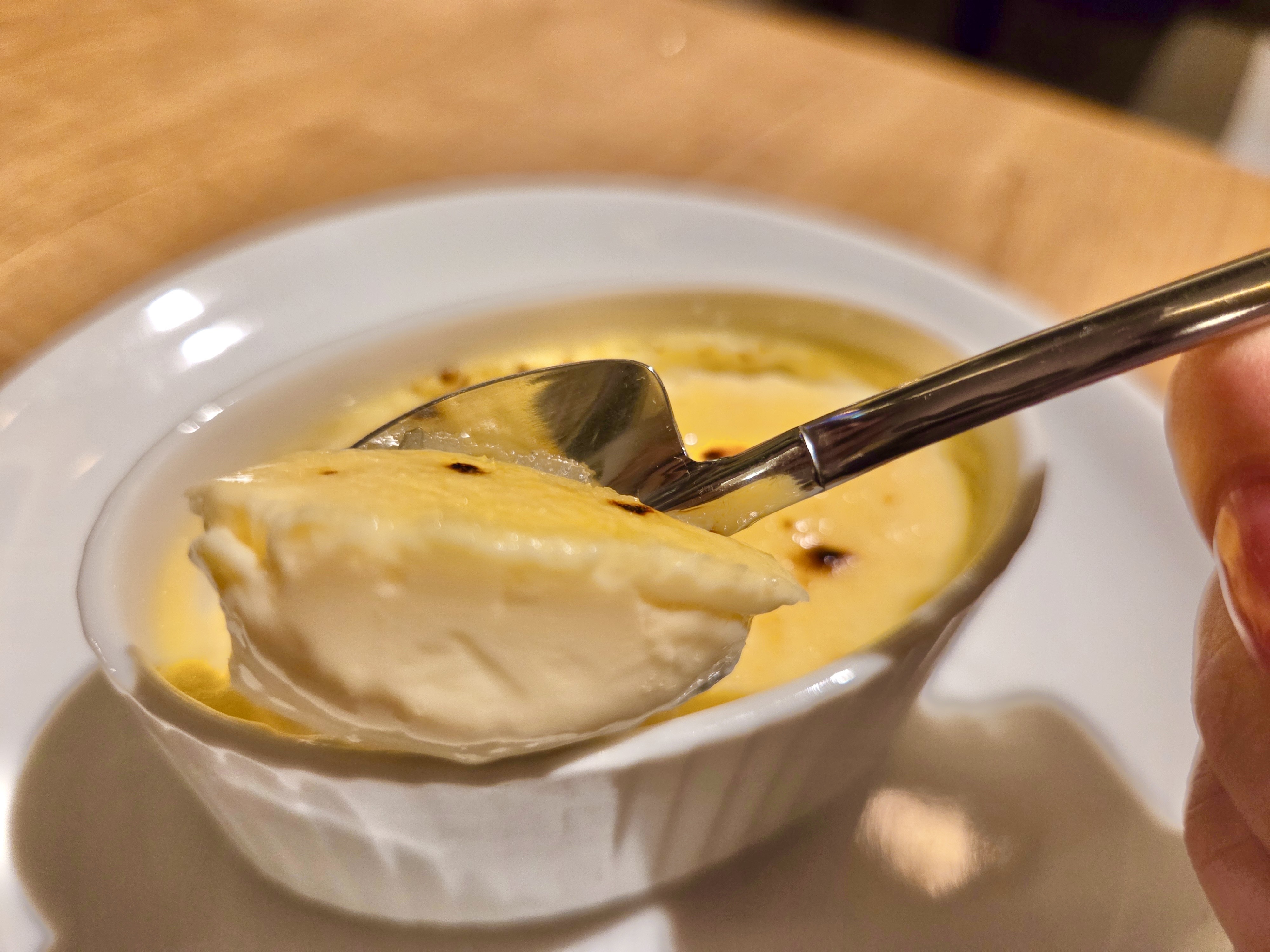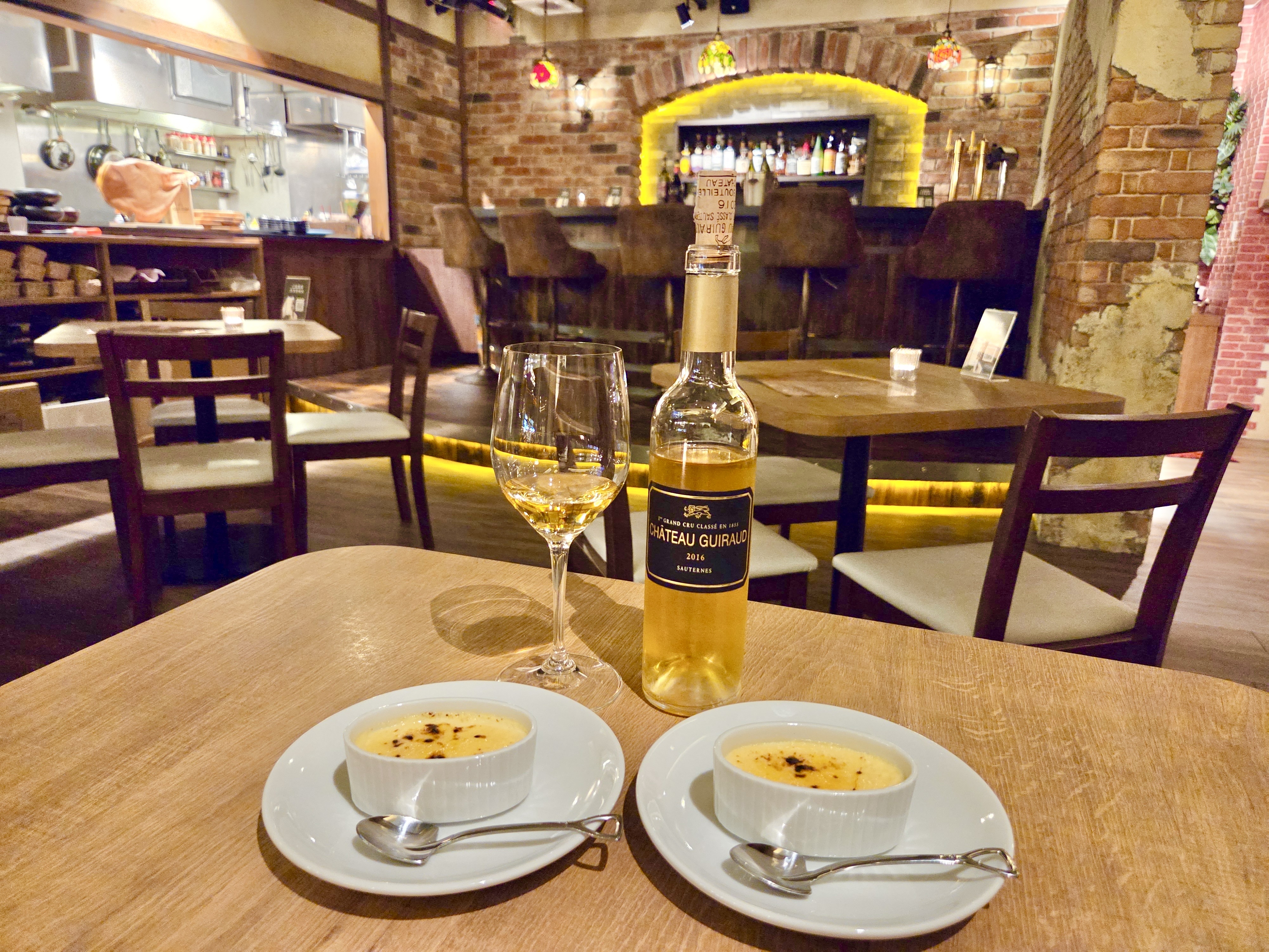 食後は、デザートワインとクレームブリュレをいただきました。
