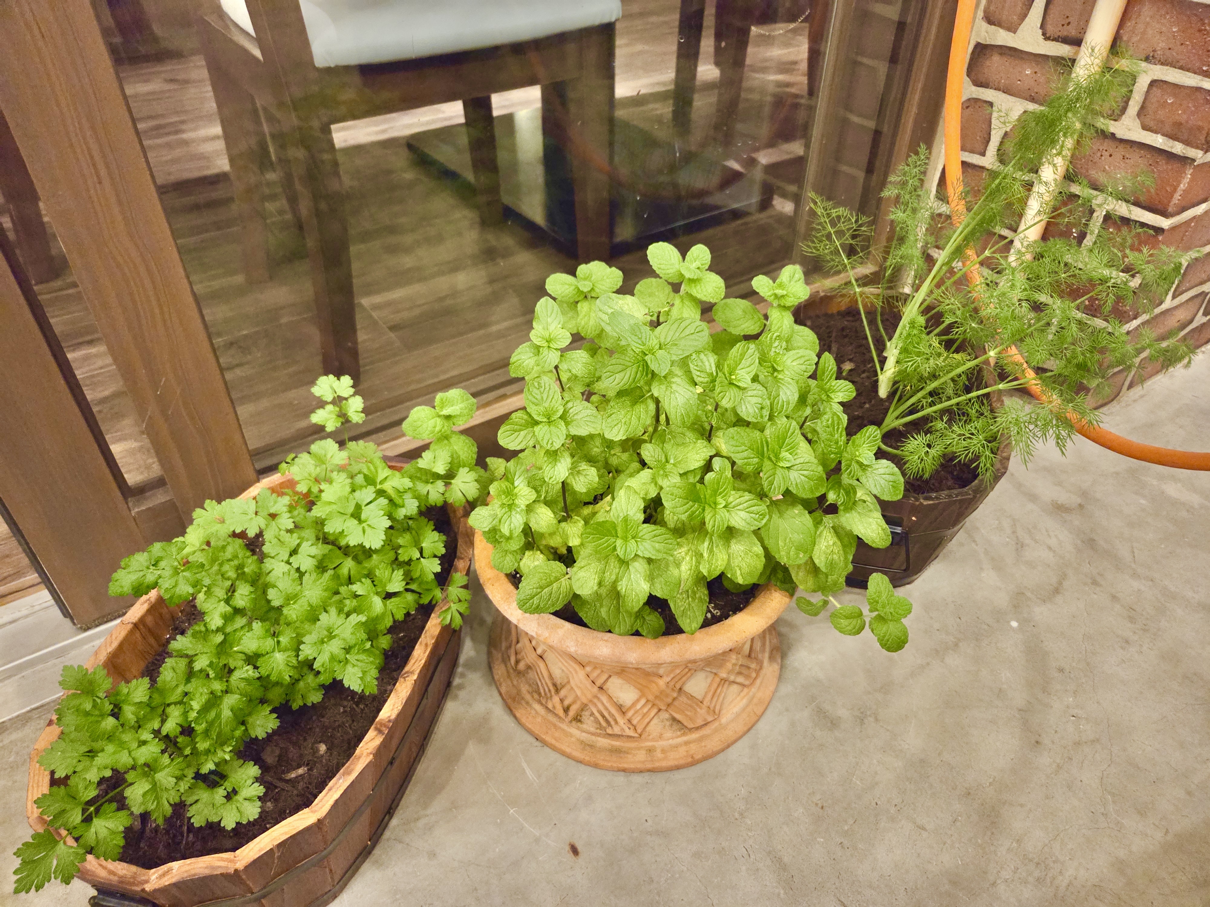 なんと、ディル、イタリアンパセリ、セルフィーユ、ローズマリー、ミントは、店内で自家栽培しているんですよ。