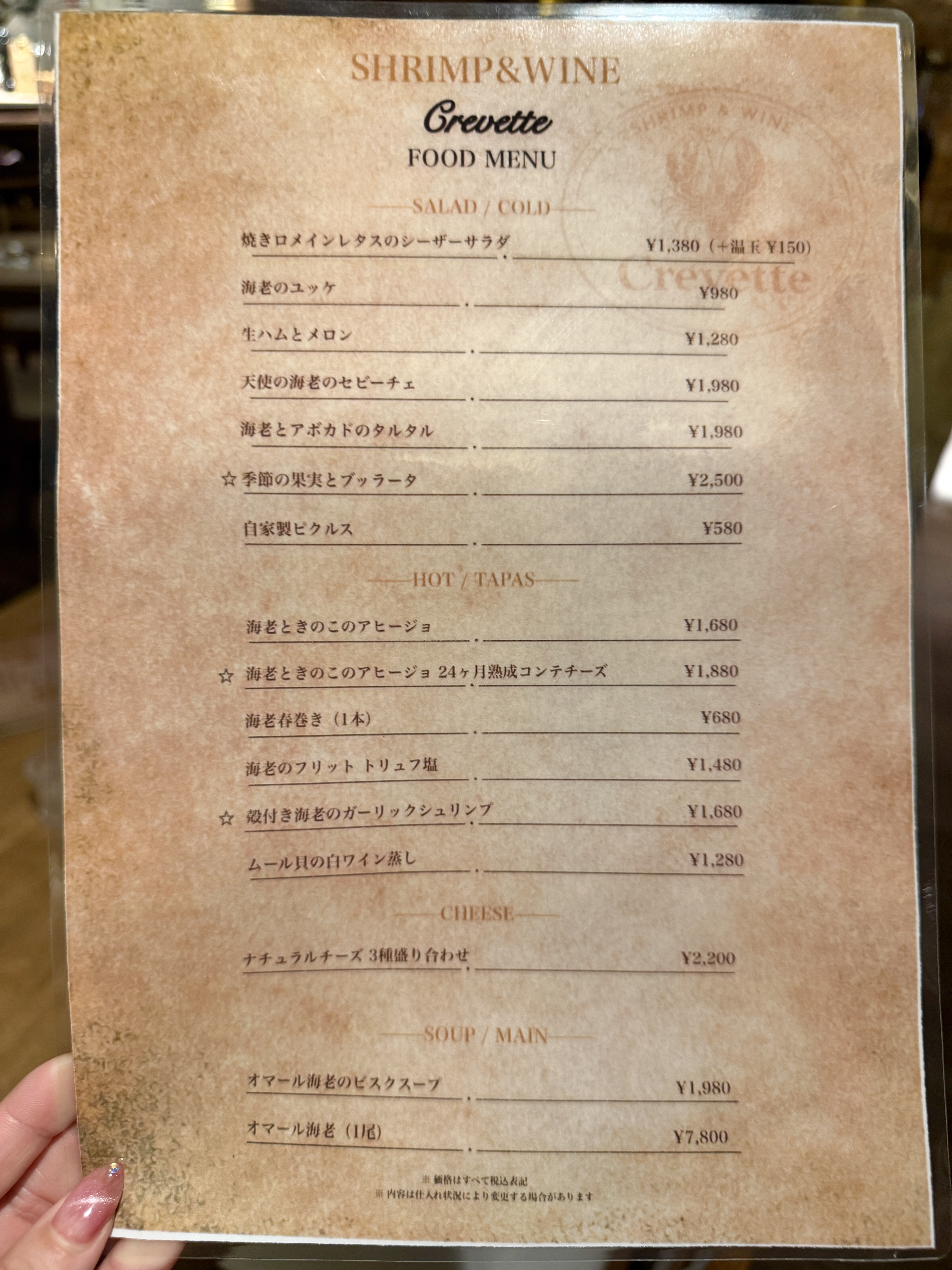店名の'Crevette'は、フランス語です。