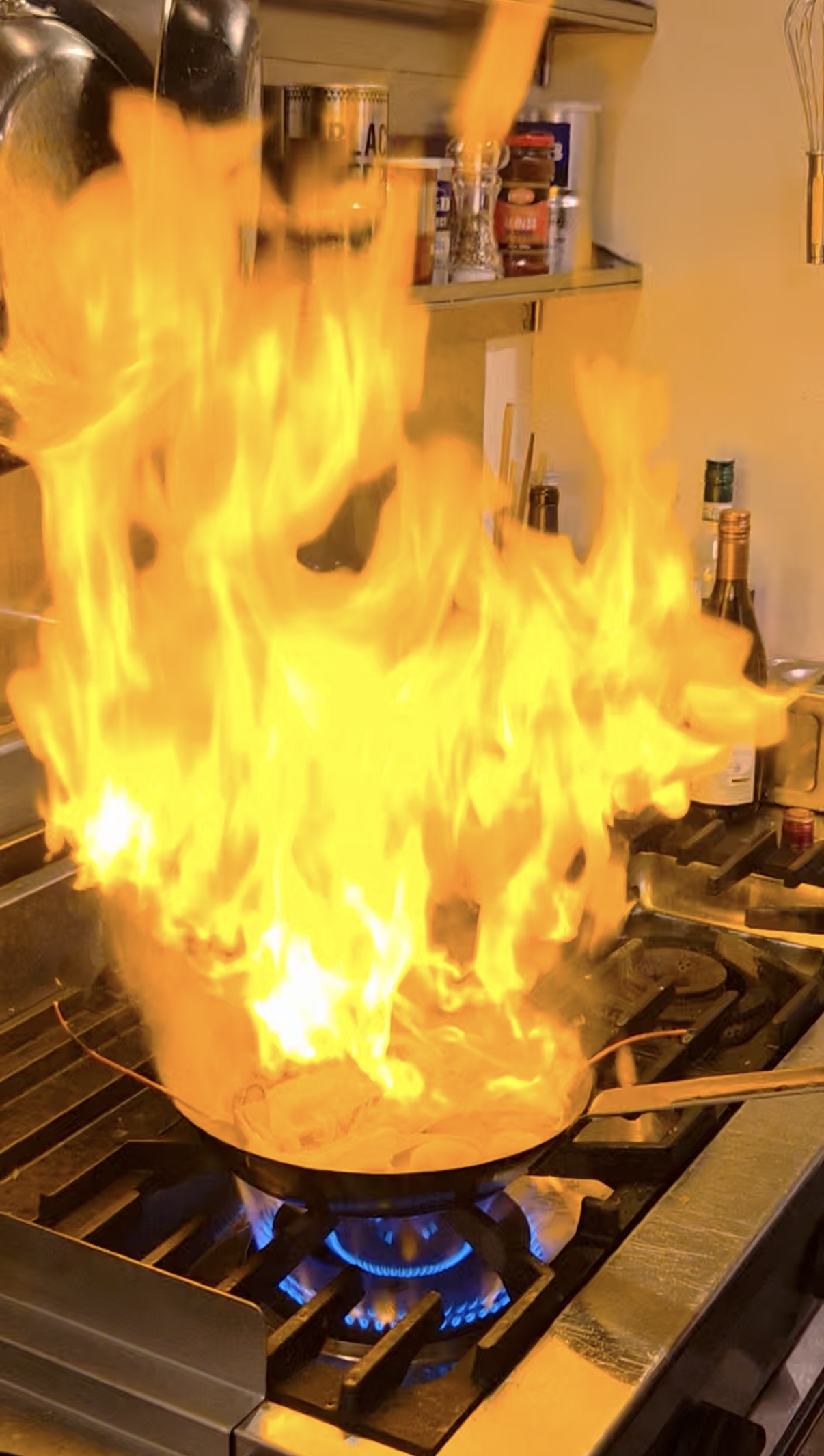調理の仕上げで、ロブスターにフランベしているところを見せていただきました。