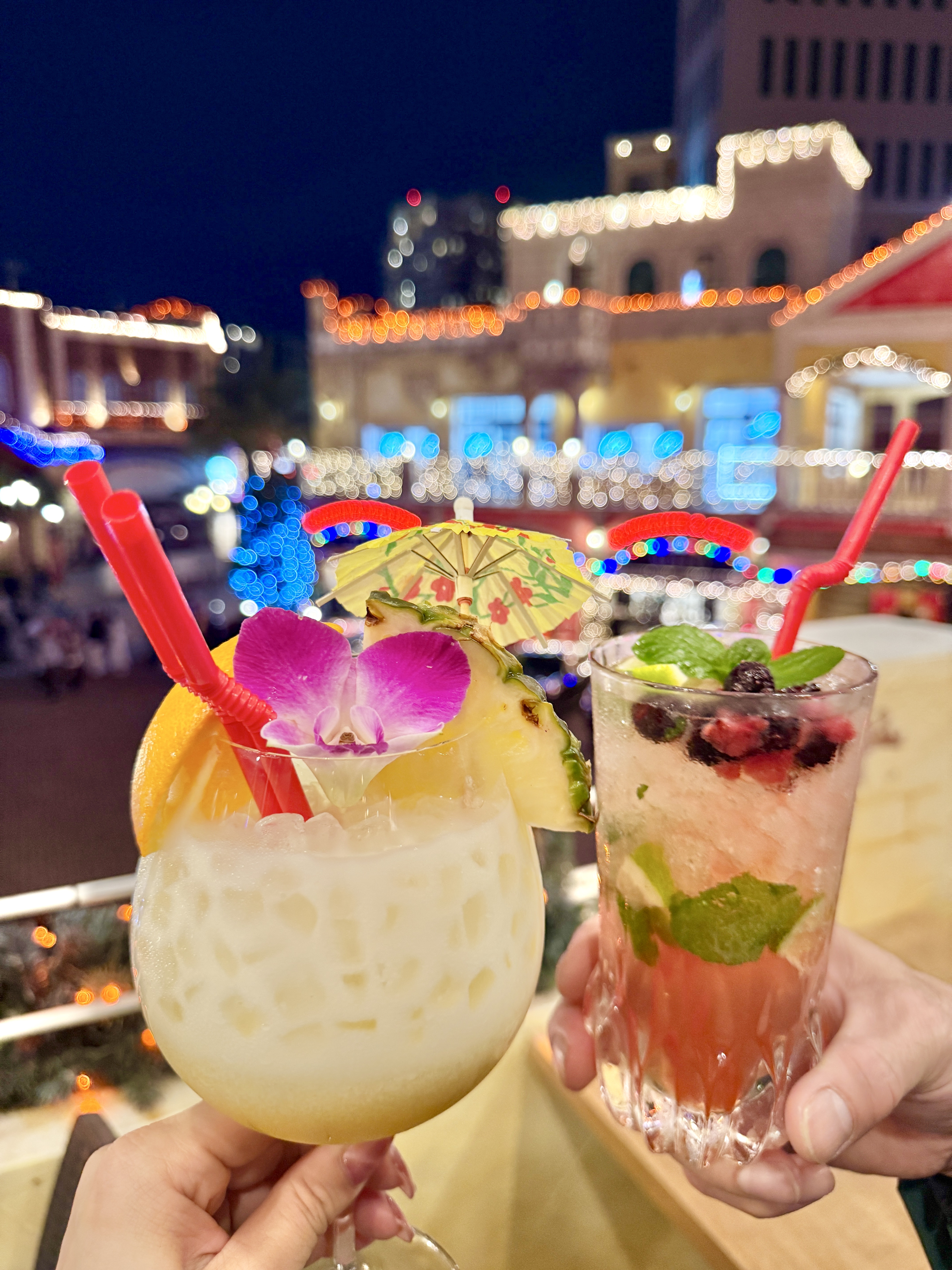 アメリカンビレッジのイルミネーションをバックに、かんぱーいっ!!