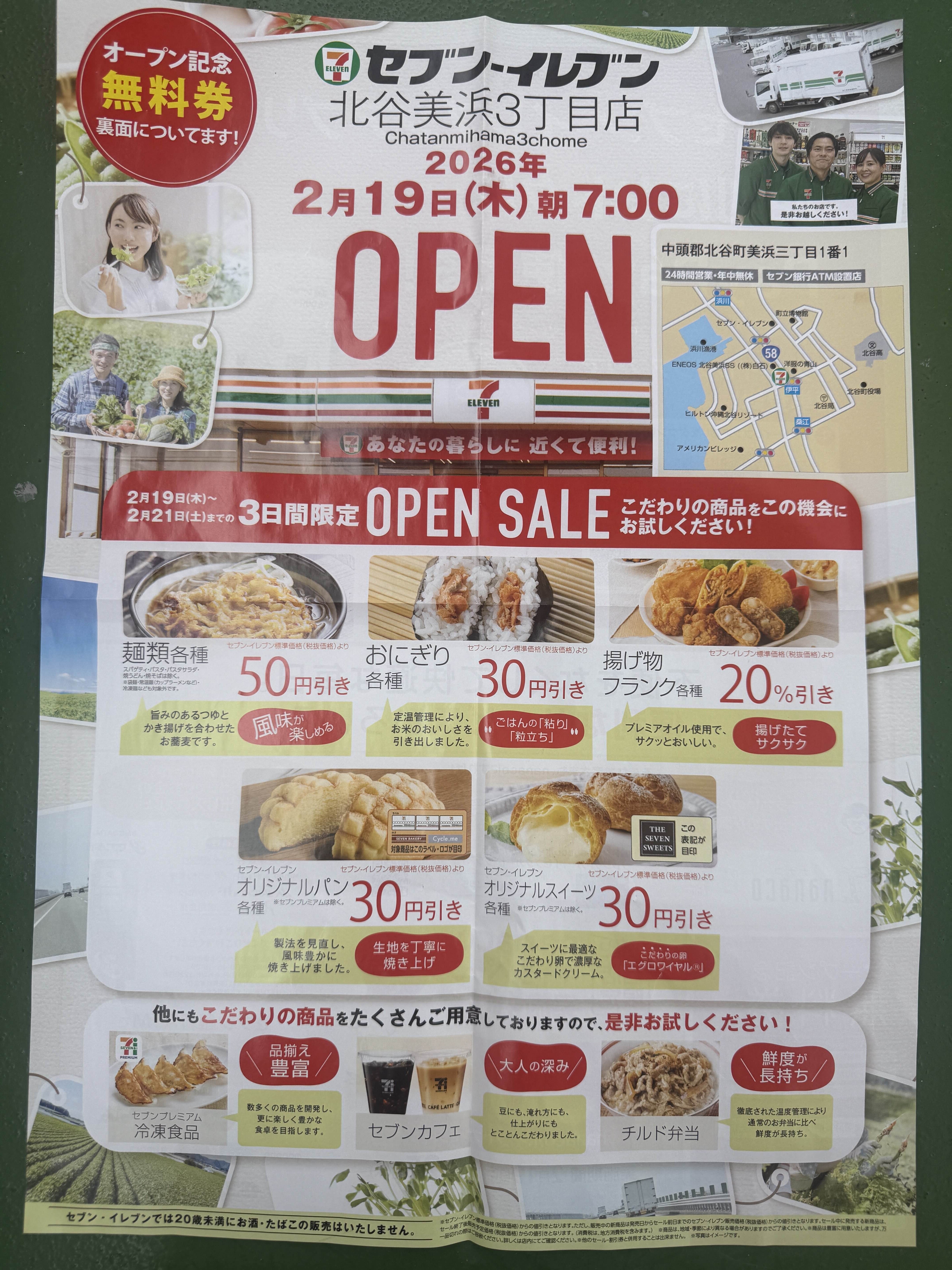 美浜の国道58号線沿いに『セブン-イレブン 北谷美浜3丁目店』が、2026年2月19日(木)に開店しましたよー!!