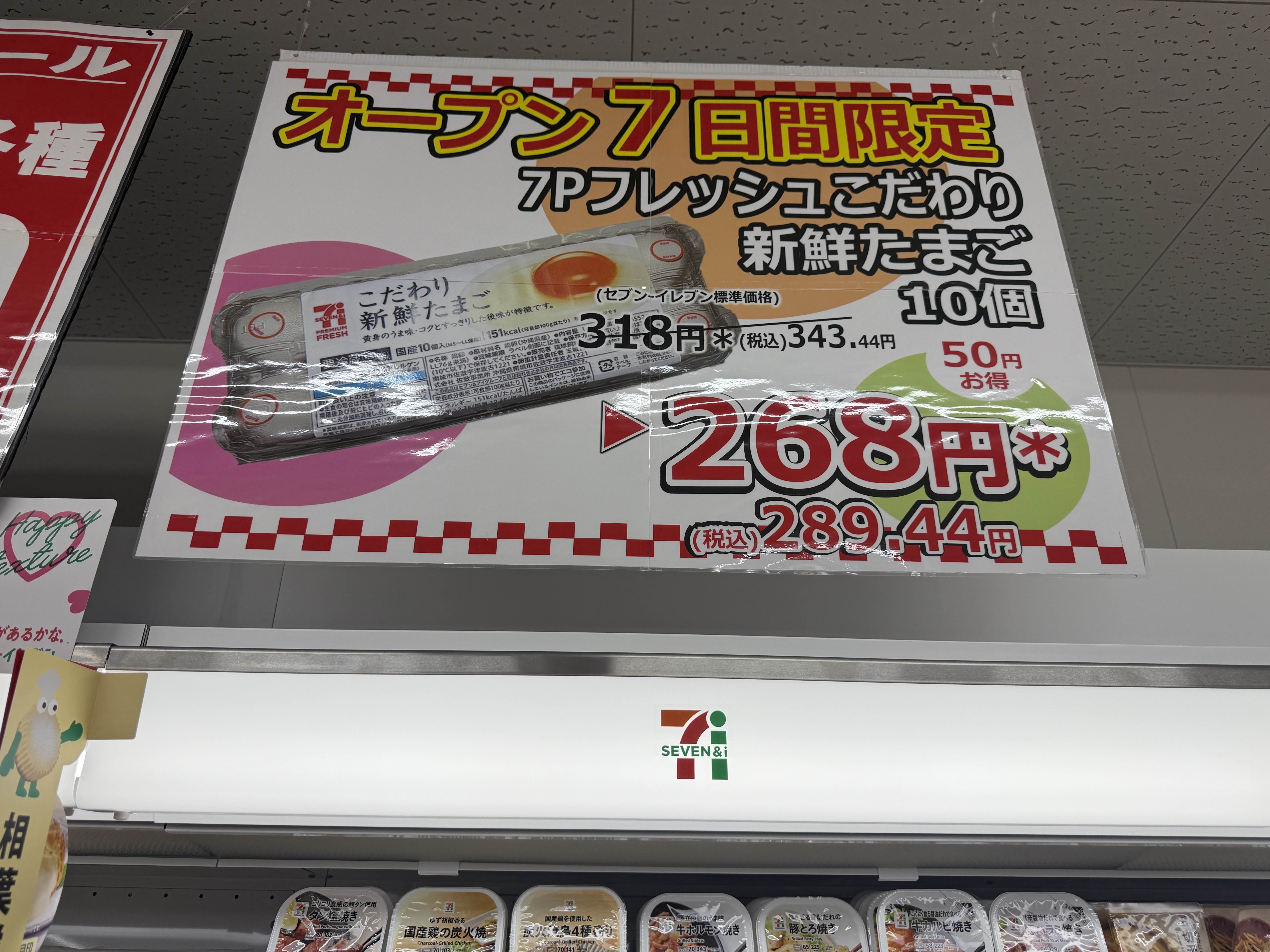 こだわり新鮮たまごは、オープンから7日間、50円割引です!