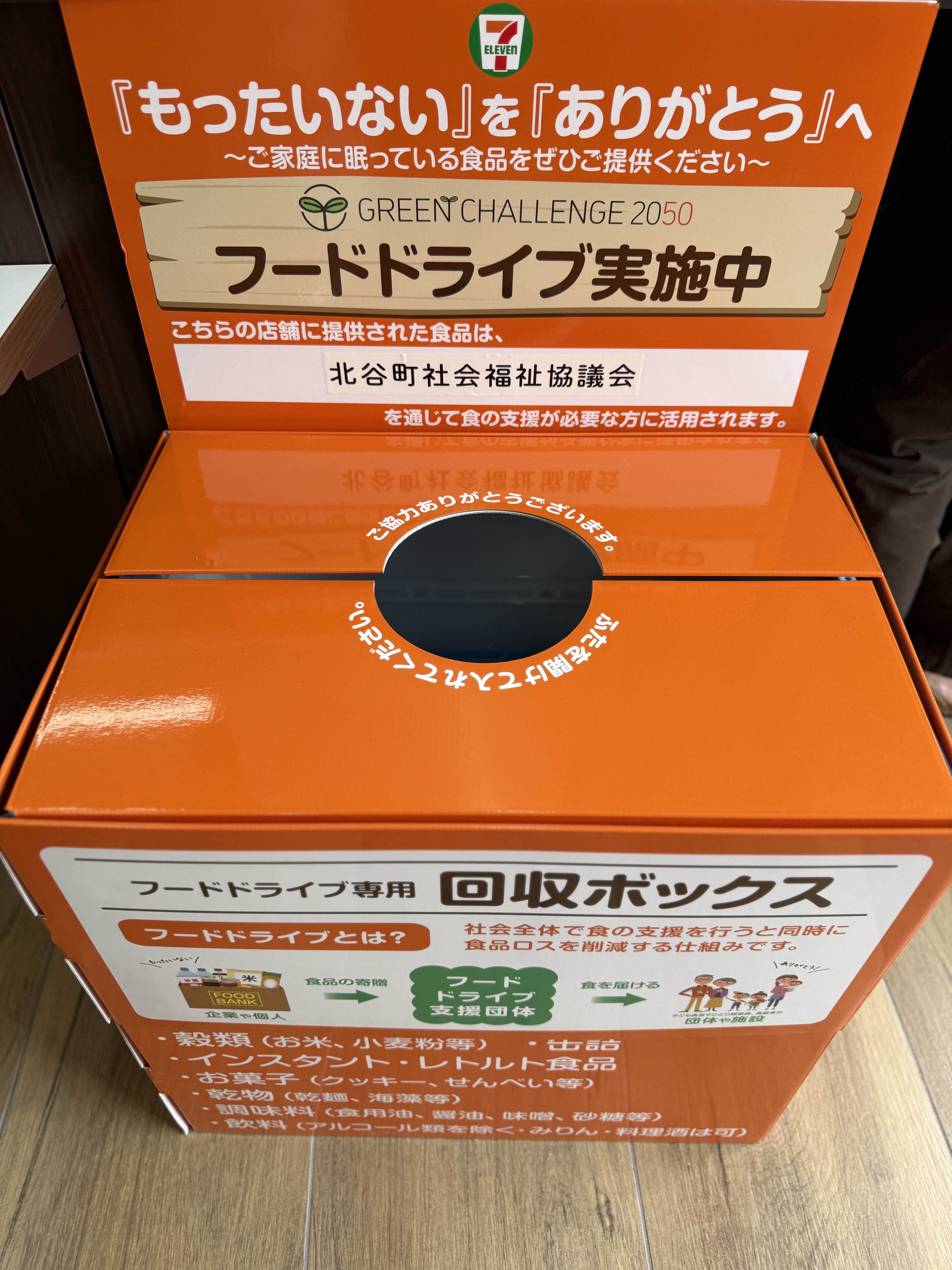 『セブン-イレブン 北谷美浜3丁目店』では、北谷町社会福祉協議会へ寄付されるフードドライブを実施中です。