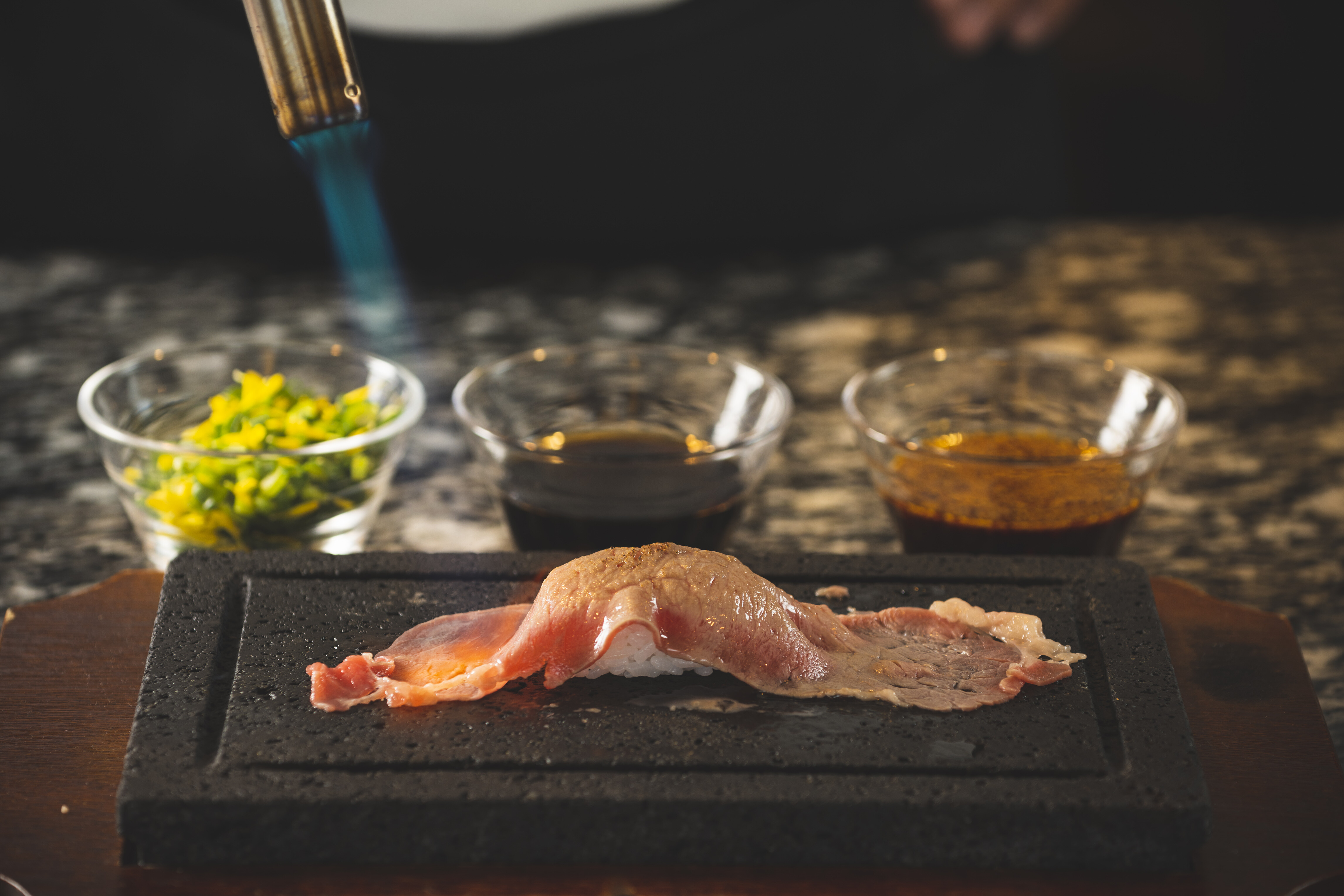 シェフが目の前で炙る「炙り牛寿司」は、毎回「スリユン」へ行く度にいただくお気に入りディッシュです!