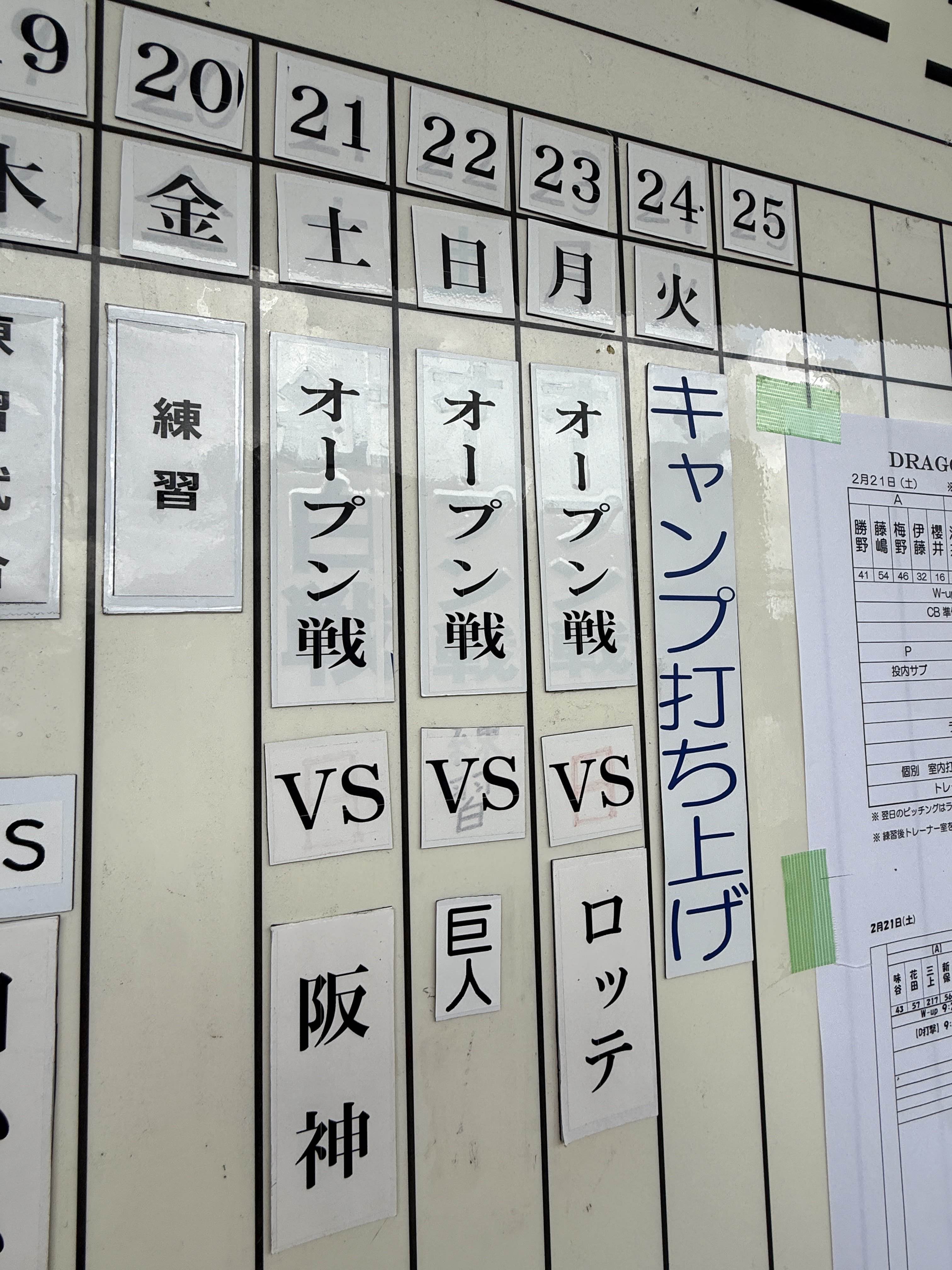 中日ドラゴンズの2026年の沖縄春季キャンプは、24日(火)までです!