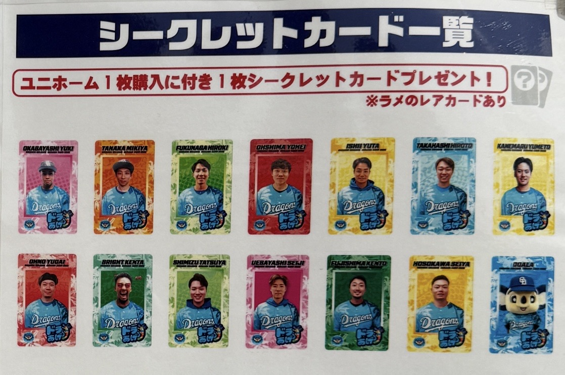 ユニホームを購入すると、シークレットカードがついてきますよー!