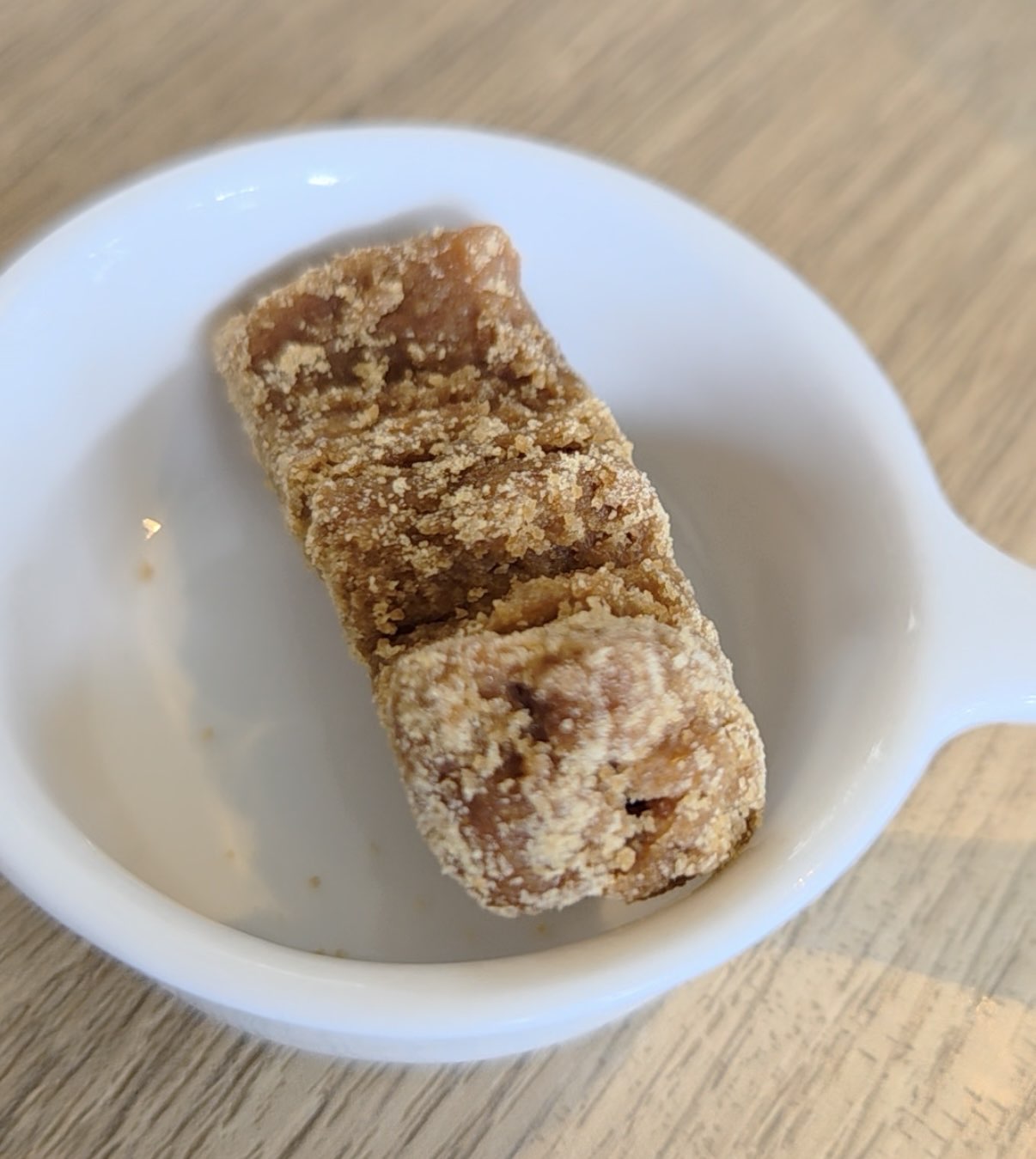 RYUKYUポタチーノに別添えでついてくる黒糖の甘みがゴーヤ特有の苦みを優しく包み込み、お口直しにぴったりです。