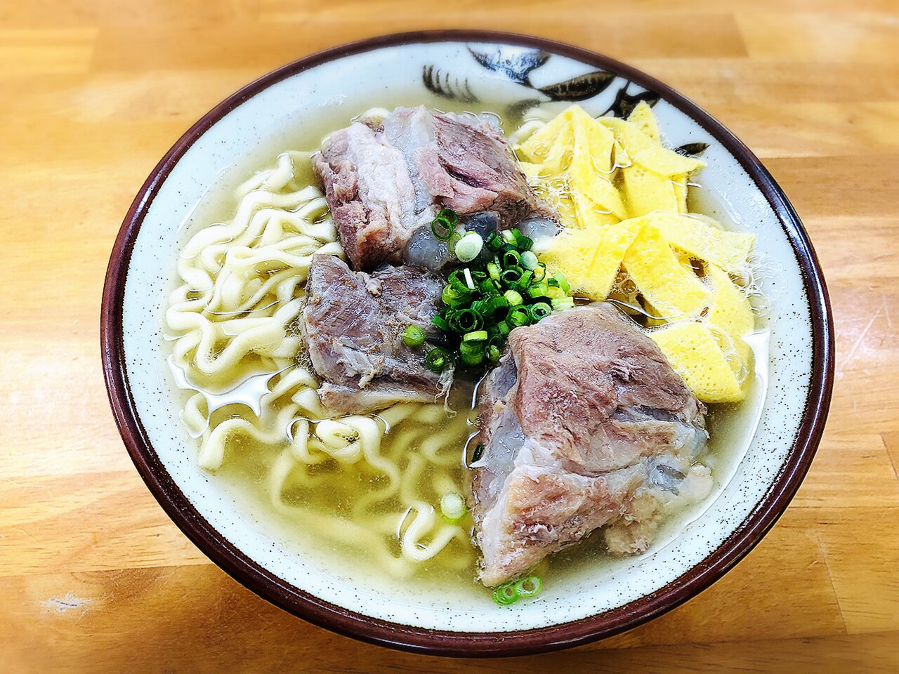そばの方は、透き通るそば汁にデカデカと軟骨ソーキが入っております!😍
