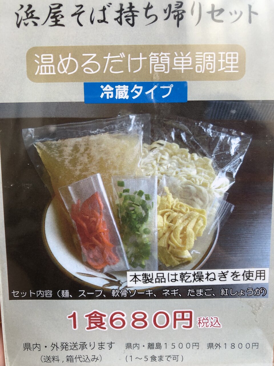 浜屋そばさんはお持ち帰りセットの販売もしており、沖縄県内を始め県外にも発送しているそうです!店内まで足を運べない方には嬉しいニュースですね✨