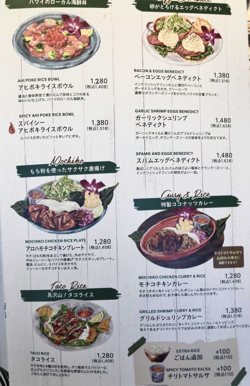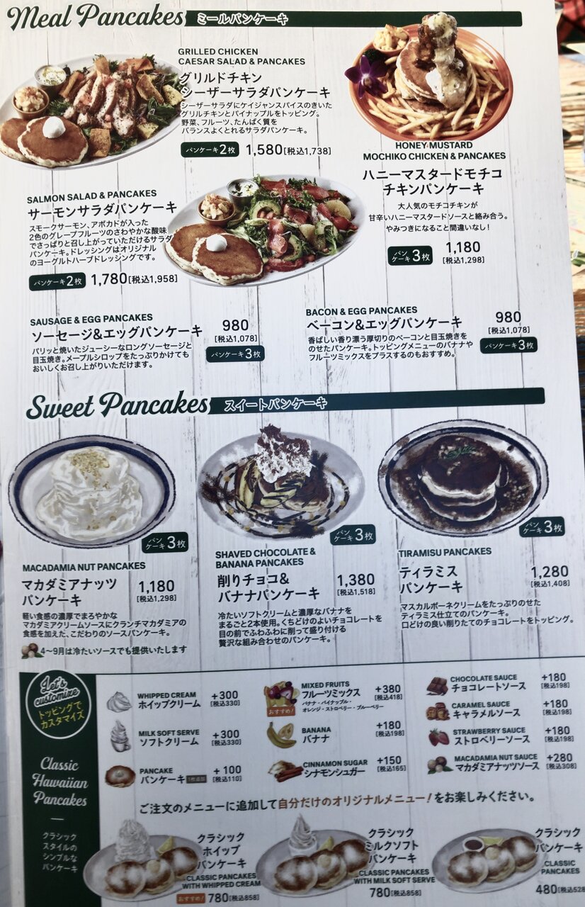 お店の看板にはハワイアンパンケーキと書いてありますが、パンケーキ以外にもたくさんの料理があります。