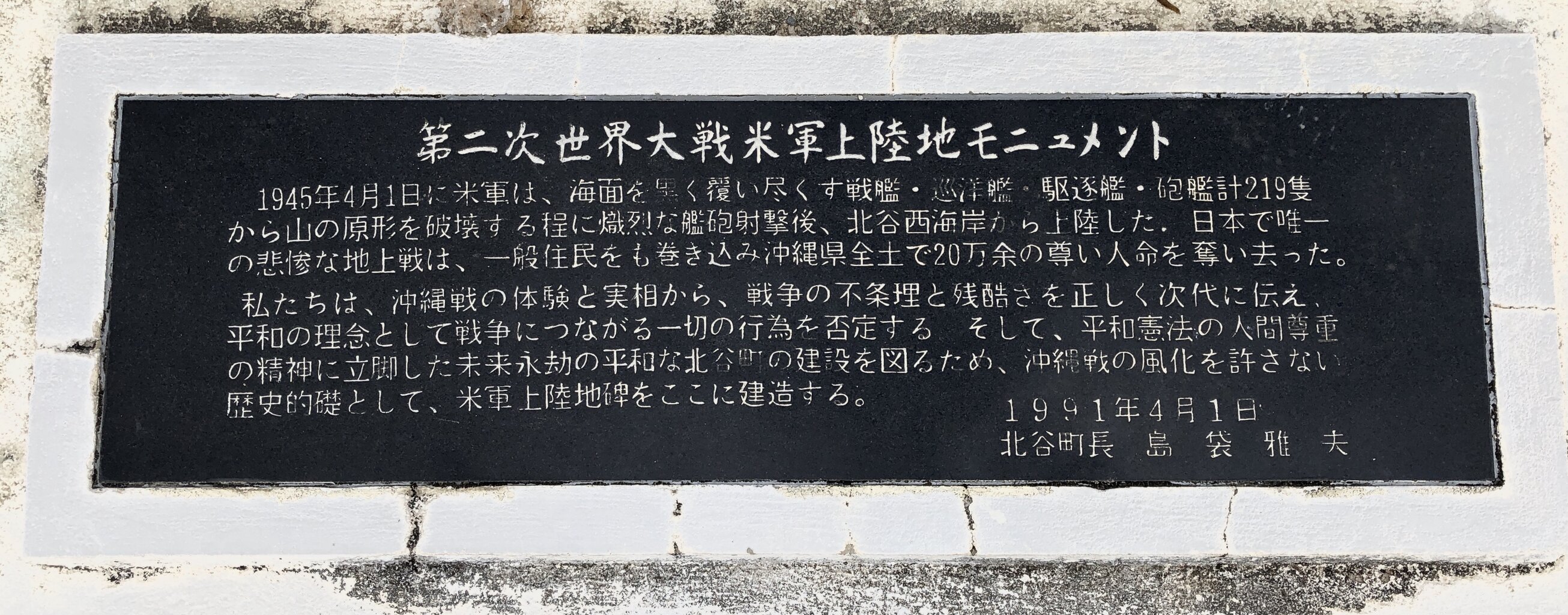 戻って少し歩いていると、第二次世界大戦米軍上陸地モニュメントがあります。
