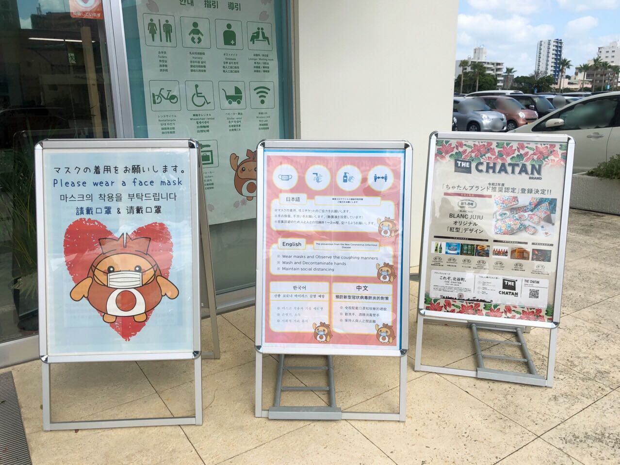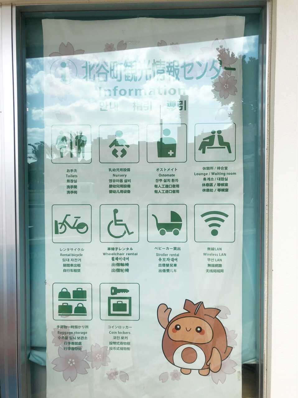 施設内を出るときに気付いたのですが、出入り口に設置されていた案内板の裏側は北谷町のイメージキャラクター『ちーたん』がいました✨色んなポーズしててかわいい~😍