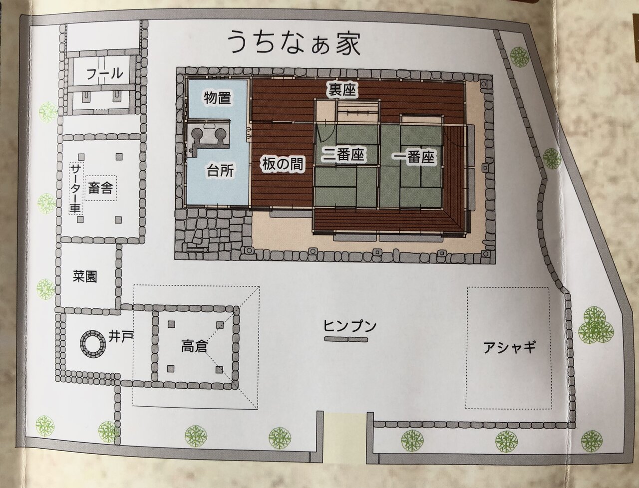 うちなぁ屋は、旧目取真家、高倉、フール、ヒンプン等を移築・修復した沖縄の伝統的な屋敷と建物を再現した施設で、平成24年2月に「国登録有形文化財」になったとの事です✨