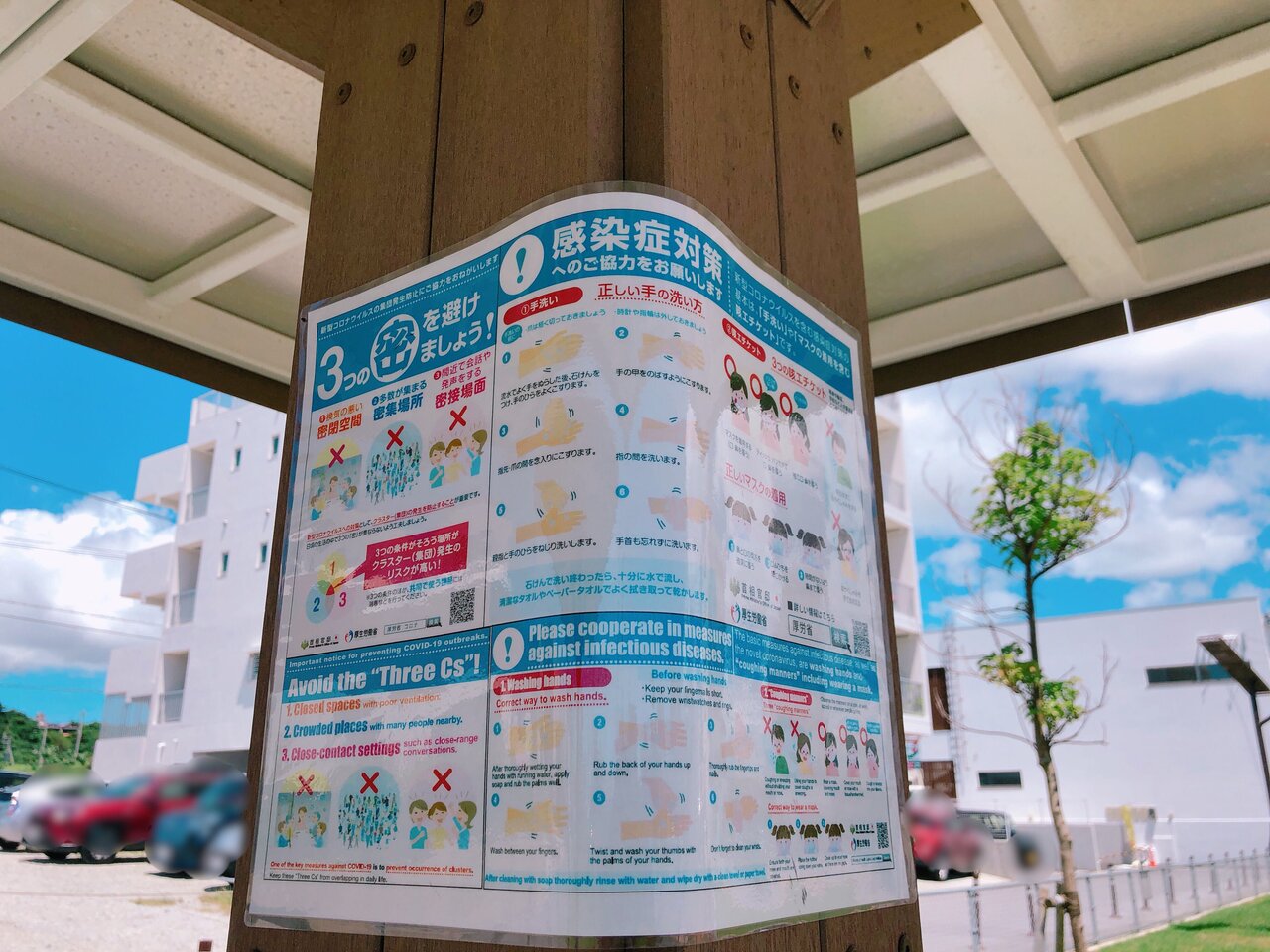 ゲートすぐ横にある感染症対策の協力を呼びかける看板です。