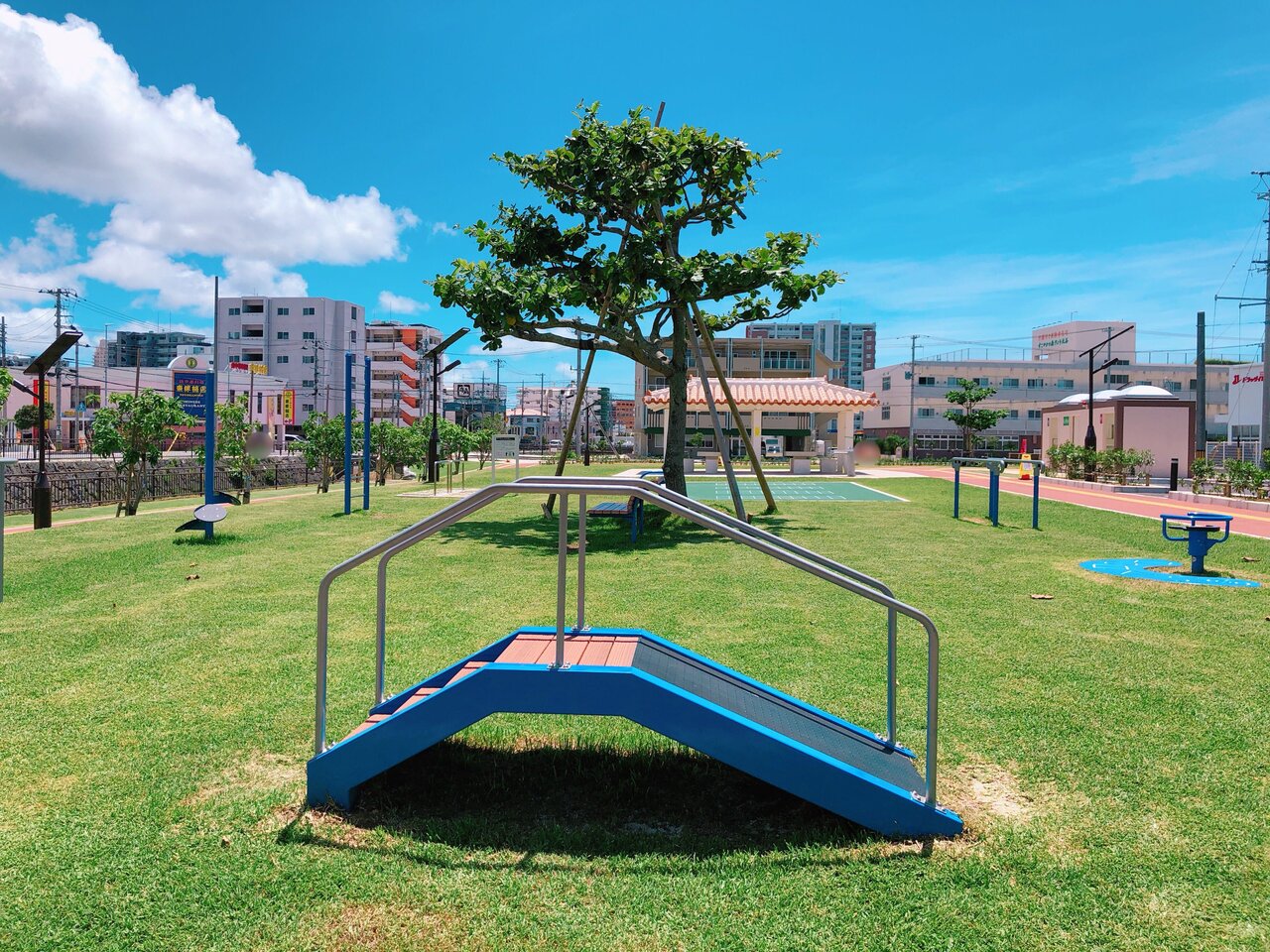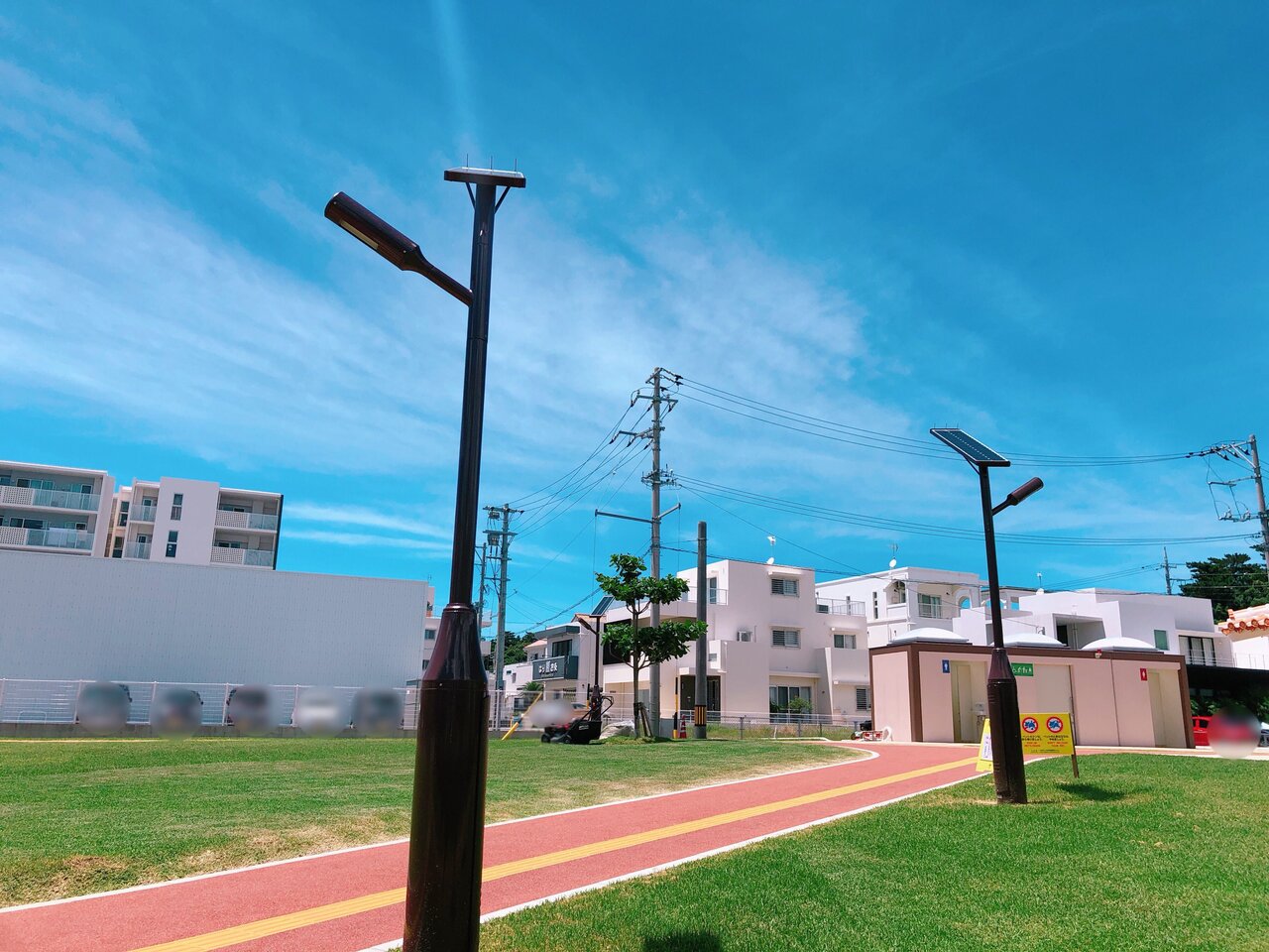 現在、沖縄県に発令されている緊急事態宣言の影響で北谷町内にある多くの施設が閉鎖されていますが、本日は通常通り利用できる公園『奈留川西(なるかわにし)公園』をご紹介いたします。