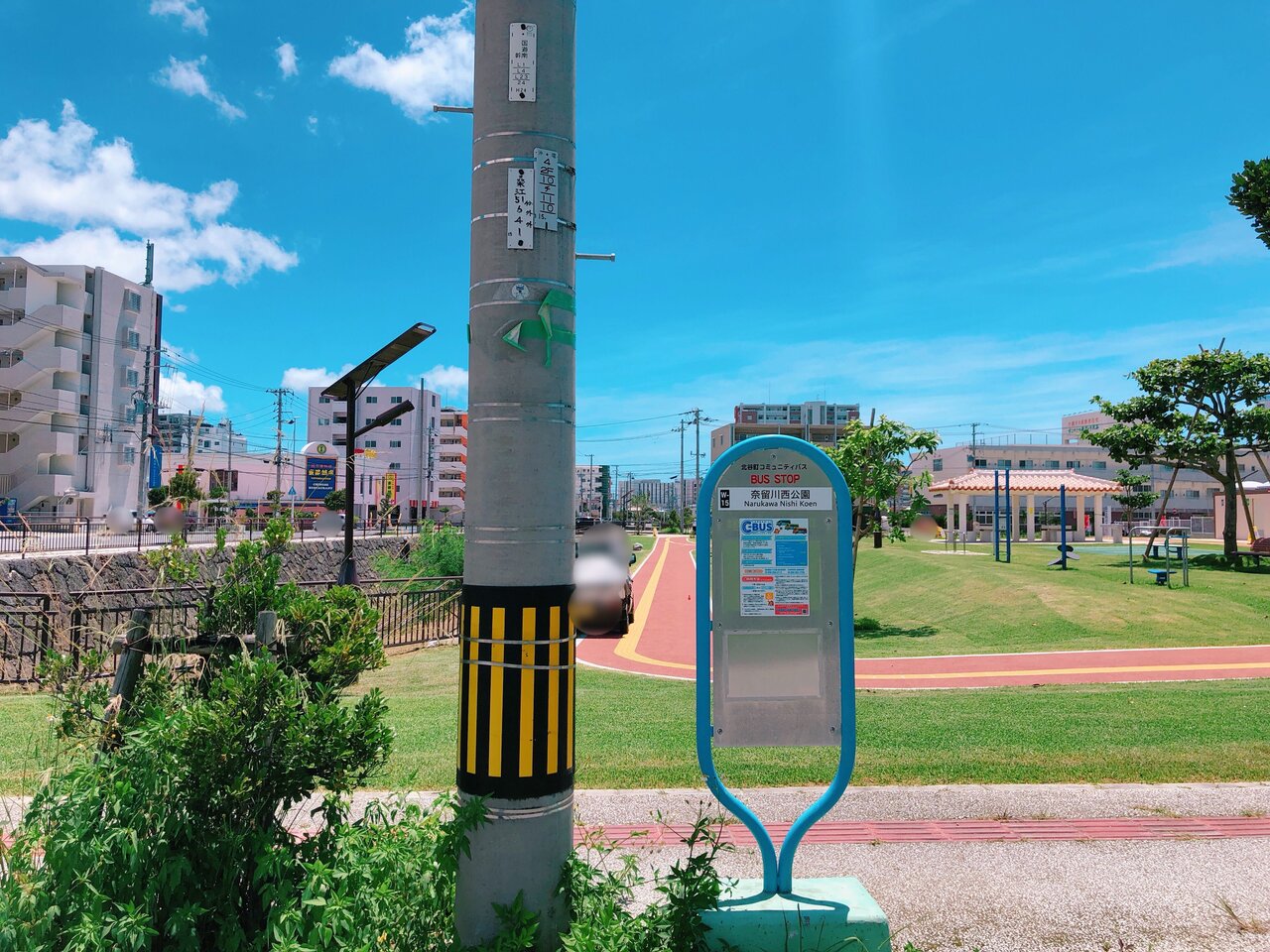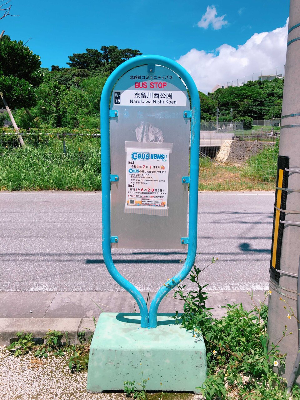 公園の目の前には、北谷町コミュニティバスのバス停があります。