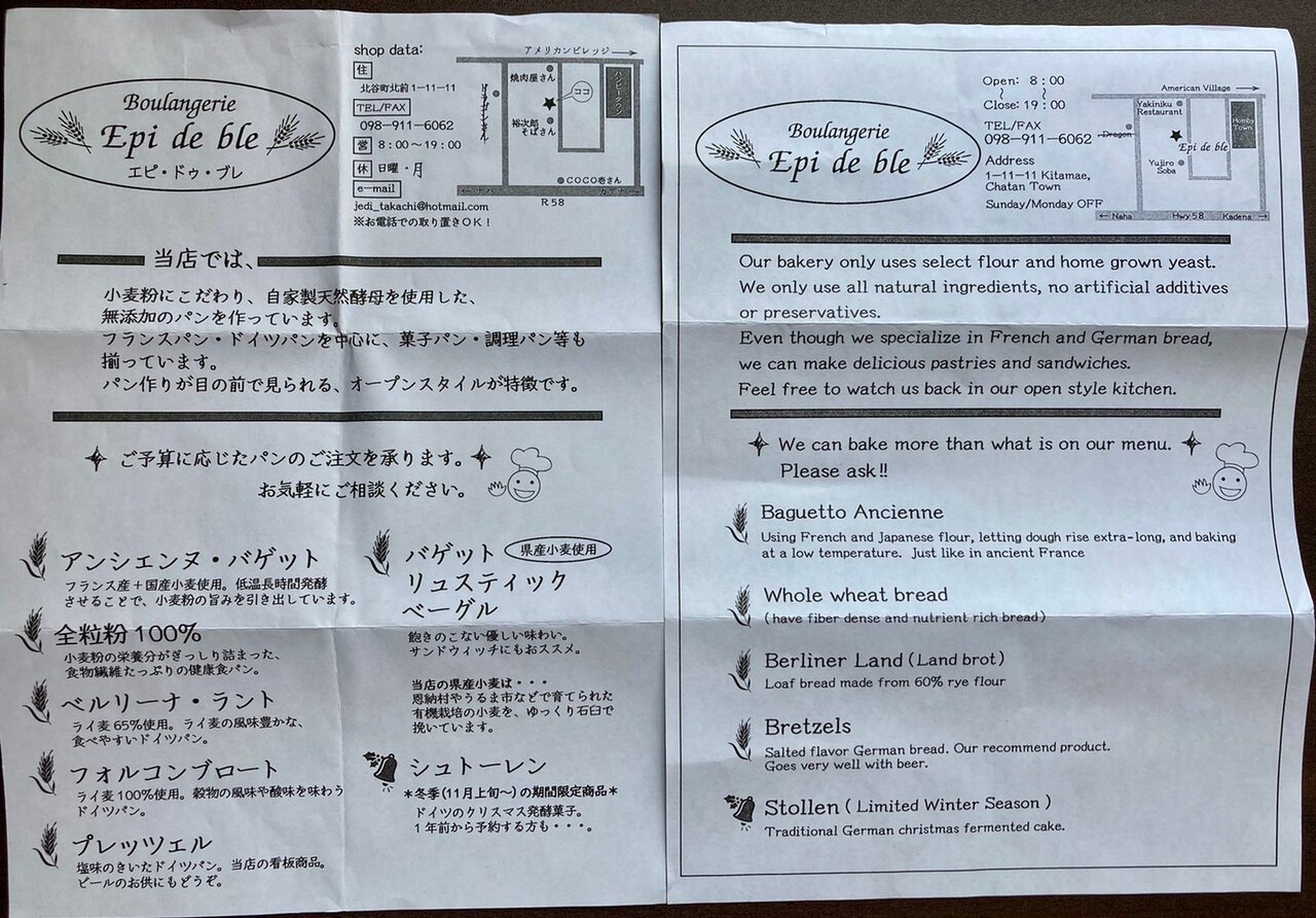 本日は、北谷町北前にあるパン屋『Epi de ble(エピ・ドゥ・ブレ)』さんをご紹介します。