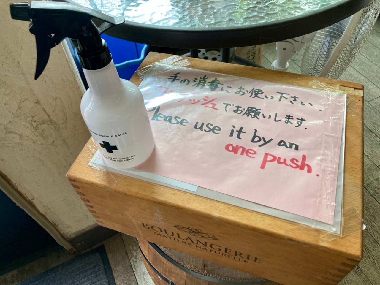 出入り口には、感染症対策のための注意喚起の張り紙が掲示されています。