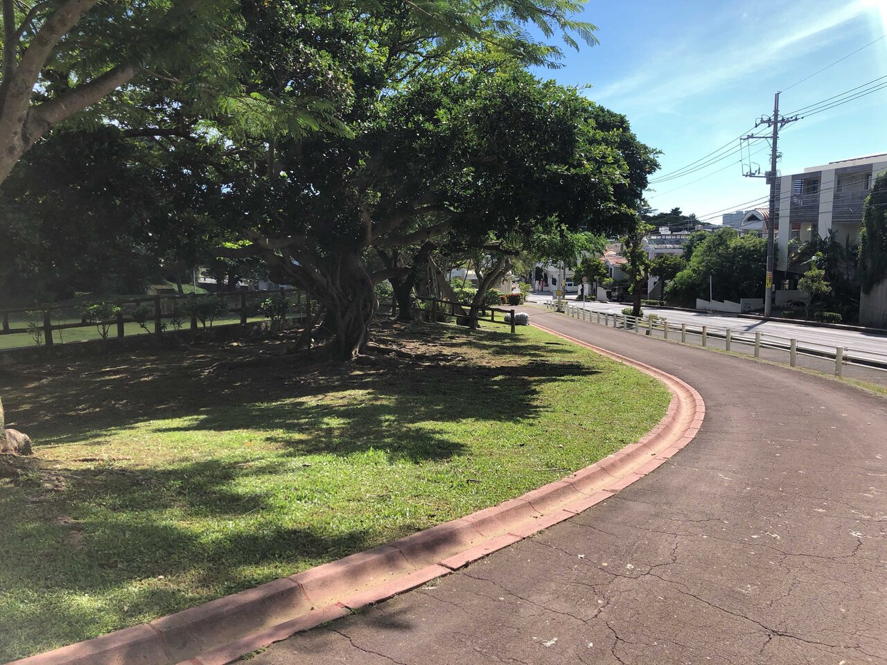 公園の出入り口はそちらの駐車場と隣接しています。
