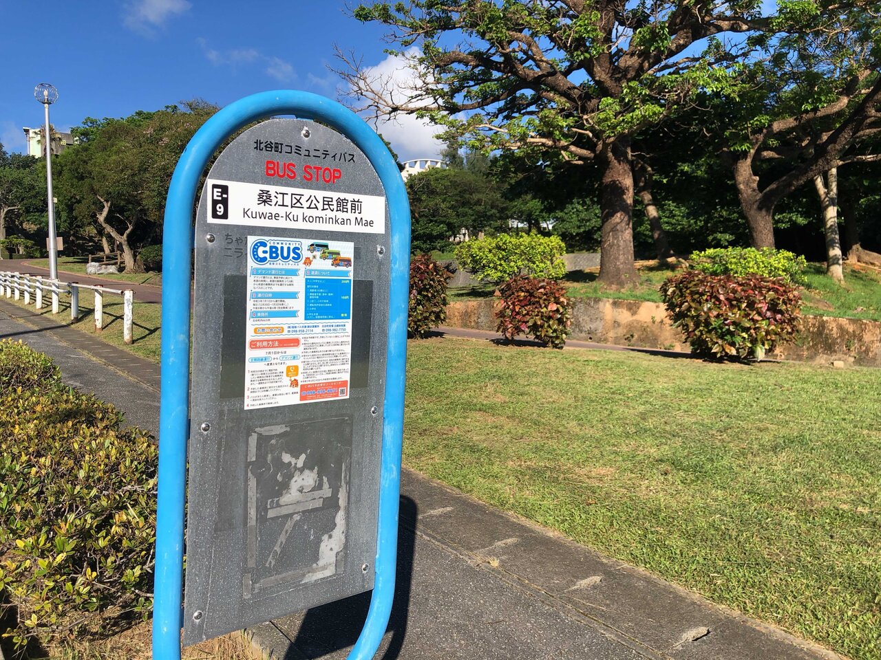 こちらは北谷町のコミュニティバス「C-BUS」のバス停です。