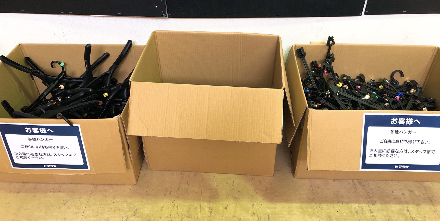 出入り口前には、無料でハンガーを配布していました。